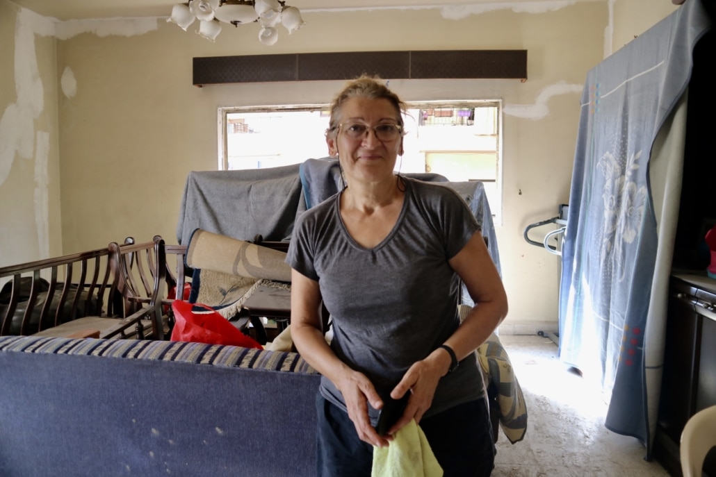 “Het hele gebouw waar ik mijn appartement heb, zwiepte van links naar rechts tijdens de explosie. Ik dacht: dit is een aardbeving, of een luchtaanval. Mijn huis is zwaar beschadigd geraakt door de explosie. Ik kon er niet blijven. Dus ben ik een paar dagen bij mijn zuster geweest, een paar dagen bij de buren, maar dat was allemaal tijdelijk. Nu heb ik een ander appartement gevonden. Dat was óók beschadigd door de explosie, maar veel minder dan mijn eigen huis. Dit appartement is opgeknapt met hulp vanuit Nederland. Daar ben ik dankbaar voor. Zonder hulp zou ik moeilijk verder kunnen.”