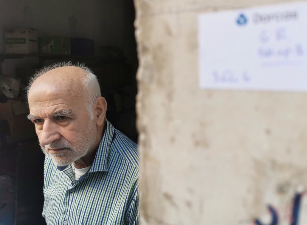 “Ik heb een kleine shop in de wijk Burj Hammoud, niet ver van de haven. Ik maak schoenzolen. De ontploffing heeft zelfs tot in de werkplaats en het magazijn schade veroorzaakt. Kijk, mijn werkplaats is onder de grond, maar zelfs daar zijn de deuren en kozijnen ontwricht. Ik ben blij dat jullie niet alleen huizen opknappen, maar ook kijken hoe kleine winkeltjes en werkplaatsen weer verder kunnen. Dat doet niet iedere hulporganisatie. De economie in Libanon staat er toch al zo slecht voor en mijn zaak is van groot belang om mezelf en mijn familie te kunnen onderhouden.”
