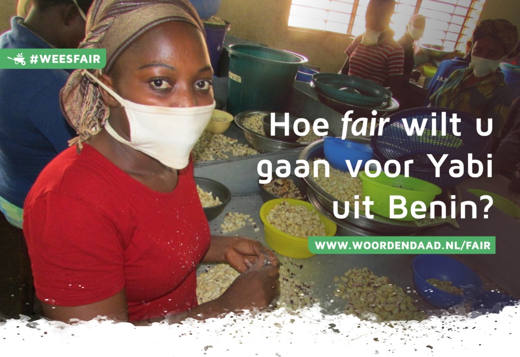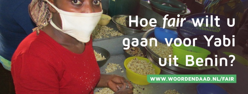 | Woord en Daad zet zich in voor faire gemeenschappen waarin iedere schakel een gelijkwaardige plek heeft. Lokale verwerkers , zoals de cashewfabriek in Benin waar Yabi werkt, leveren veel mensen een vaste baan op. Daarnaast zorgen ze voor een vast afzetkanaal en een stabiel inkomen voor de boeren. De hele gemeenschap komt in de lift! Onder de titel ‘Hoe fair wilt u gaan? voeren we actie voor verschillende projecten op het gebied van inclusieve ketens en faire gemeenschappen in Bangladesh, Benin, Burkina Faso, Ethiopië, Guatemala, Madagaskar en Sierra Leone. Uw bijdrage hiervoor is van harte welkom! |