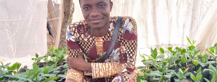 Paul Holonou zit op zijn hurken tussen twee rijen met jonge cashewboompjes. De 27-jarige ondernemer is het liefst in de natuur te vinden. ‘Ik houd er van om in het groen te zitten, daarom ben ik boomkweker geworden,’ vertelt hij. Met steun door AgriJob Booster Benin hoopt hij zijn bedrijf de komende jaren uit te breiden.