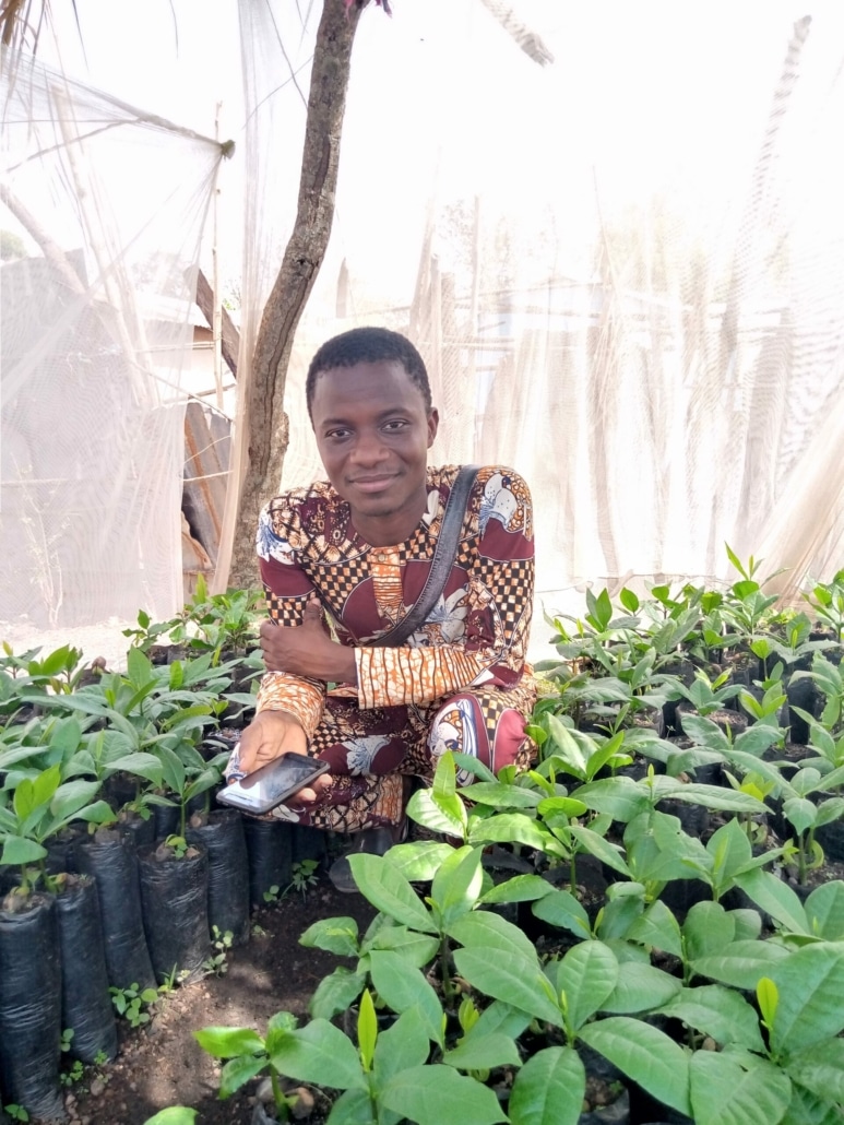 Paul Holonou zit op zijn hurken tussen twee rijen met jonge cashewboompjes. De 27-jarige ondernemer is het liefst in de natuur te vinden. ‘Ik houd er van om in het groen te zitten, daarom ben ik boomkweker geworden,’ vertelt hij. Met steun door AgriJob Booster Benin hoopt hij zijn bedrijf de komende jaren uit te breiden.