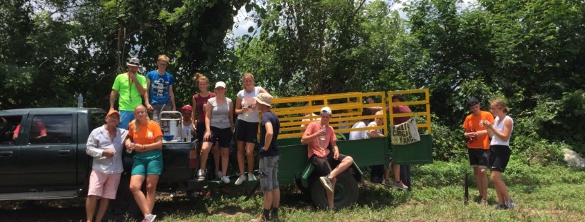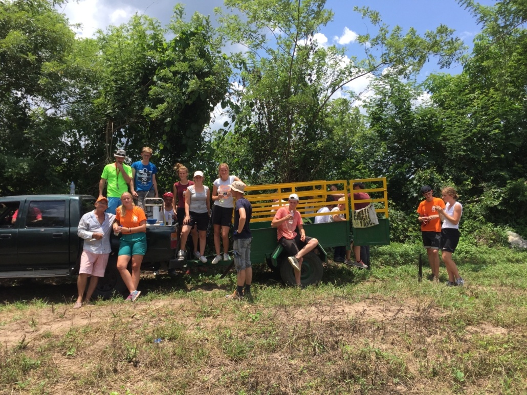 De rest van de groep liep zo’n drie kilometer naar een boerderij alwaar de boer ons met pick-up en aanhanger door het land naar een veld cassave bracht. We rooiden samen een hectare (iets minder) van deze wortelplant. We kregen rond de middag een overheerlijke soep voorgeschoteld, de nationale versie, en besloten daarna weer terug te rijden naar de school in El Pozon, Cartagena.