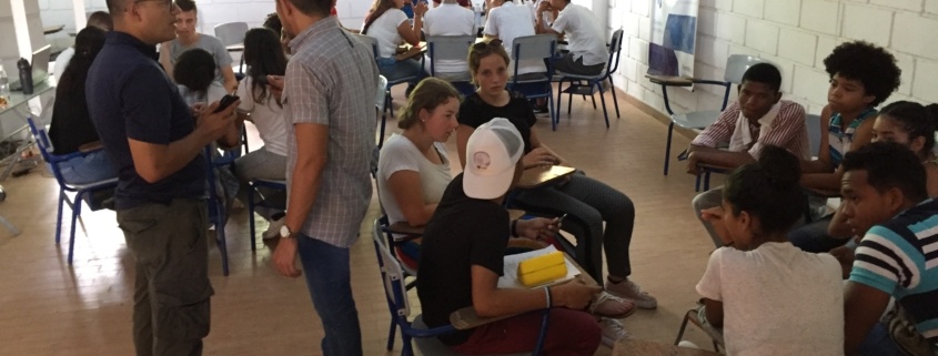 De buddygesprekken met jongeren waren ook heel erg interessant. Eerst moesten wij de Colombiaanse jongeren voorstellen in het Spaans en daarna andersom. Na het voorstellen gingen we het gesprek aan over God en de Bijbel. En vooral hoe wij hier tegenaan kijken. Het waren mooie maar ook lastige gesprekken, want hoe ga je uitleggen waarom iedereen anders is, een andere huidskleur heeft of een beperkingen? Na een groepsfoto gingen we om 11.30 uur weer terug naar de bouwplaats.
