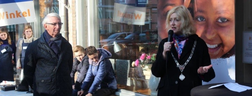 Terwijl de burgemeester aansluitend een eerste aankoop doet vertelt Rina Molenaar, directeur-bestuurder van Woord en Daad, over hoe jongeren in India dankzij dit project niet alleen voor zichzelf een betere toekomst hebben, maar dit een grotere uitwerking heeft. “Als u vandaag in de winkel een aankoop doet, helpt u niet alleen die ene jongere, maar het hele gezin.”