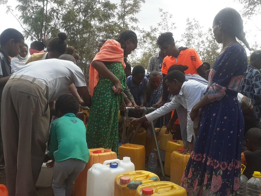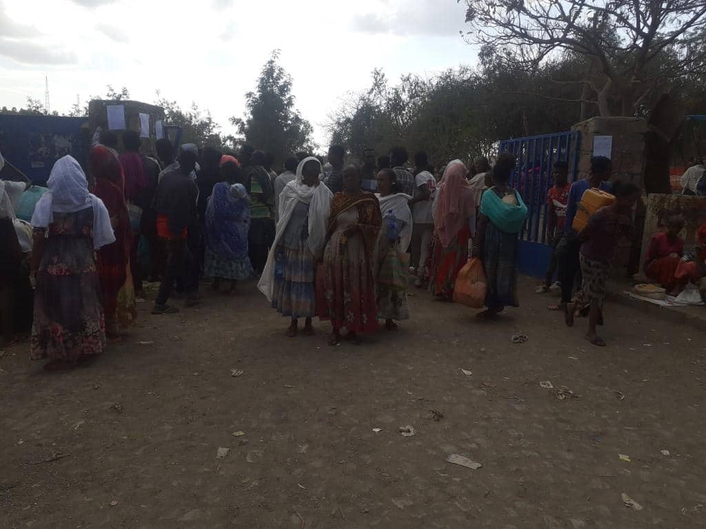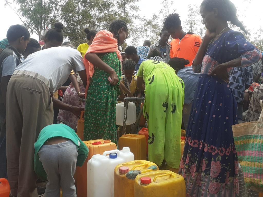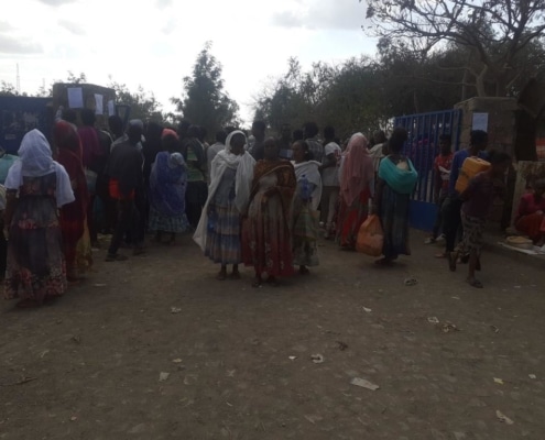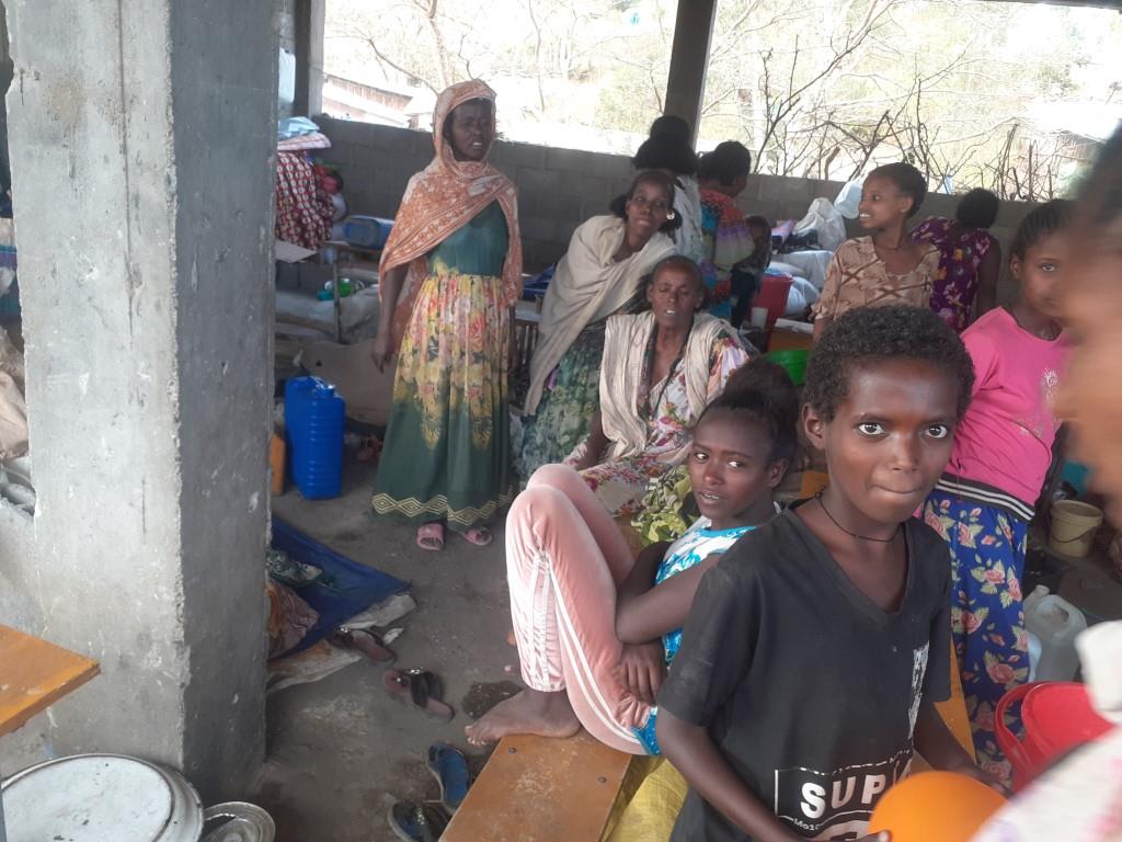 Bij het waterpunt is het druk. De kraan is nauwelijks te zien tussen de mensen, maar de gele jerrycans bewijzen dat hier drinkwater gehaald kan worden. In de lokalen zitten de vrouwen en kinderen op schoolbanken en op de grond. Overal waar je kijkt zijn mensen. De campus van de universiteit bij de Ethiopische stad Shire is veranderd in een vluchtelingenkamp. Een grote groep ontheemden uit Tigray zoekt hier een veilig heenkomen.