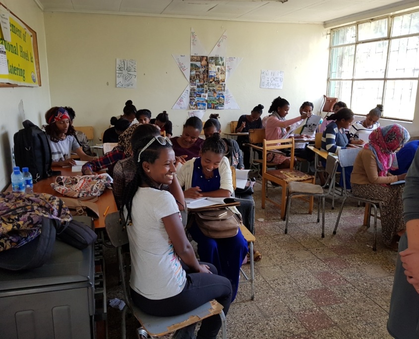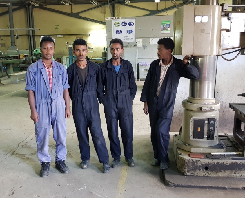 - Een 22 jarige jongeman (Zokba Amade) met een metaalwerkplaats, met twee jongeren als werknemer. Hij had zijn opleiding bij de TVET in Nazareth gehad. Best verlegen, maar hij had echte plannen en dromen. Prachtig om al die oogjes achter hem te zien van jongens die verlangend naar een betere toekomst meeluisteren.