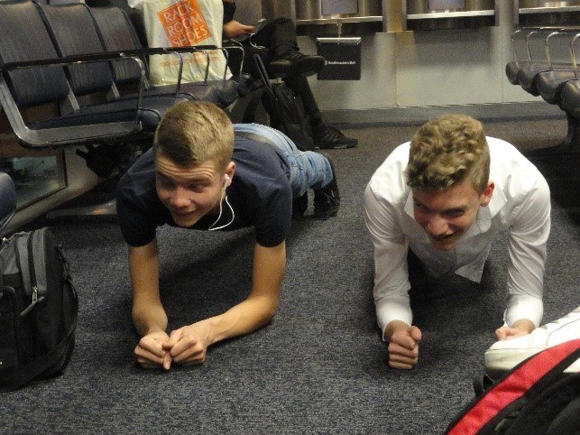 Vanochtend zijn we op tijd vertrokken. De ‘Veluwse groep’ (John, Arjan en Dick) om half vijf vanuit Wekerom, Barneveld en Veenendaal, via Gorinchem (Cees opgepikt) per auto naar Brussel. André en Egbert zijn per trein van Bodegraven via Woerden, Rotterdam naar Brussel gereisd. Na het gebruikelijke ongemak van een bijna gemiste trein en wat gezoek op Brussel-Zuid, zijn we per TGV naar het vliegveld Charles de Gaulle vertrokken. Die reis verliep voorspoedig en we waren ruim voor twaalf uur op de airport. De bagage was in Brussel al ingecheckt, dus die zware last waren we al kwijt. Charles de Gaulle is een moderne luchthaven; daar vonden we onze weg wel, na wat gedoe met te veel kilo’s handbagage. Rond half twee taxieden we richting startbaan, alwaar een voorspoedige reis begon. Het weer was prachtig, zowel in Frankrijk als onderweg.