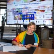 Alle partijen worden aan het einde van de bijeenkomst naar voren geroepen. Een mooie foto en nog een keer de symbolische handtekening op een groot foam board. Om half vijf sluiten we af. Ik sjees van Rotterdam naar Gorinchem want er wacht een vergadering van de raad van toezicht op me. Dat sjezen valt wel tegen want al snel beland ik in een file. Gelukkig nog op tijd in Gorinchem. Bij de raad van toezicht vergaderen we onder andere over de doorontwikkeling van het job boosterprogramma.