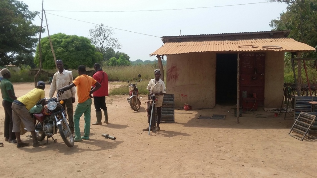 In 2016 opende Isai zijn kleine werkplaats in Kpassa, een dorp even buiten Parakou. Hier groeide hij op en woont zijn familie. Nadat hij de opleiding tot lasser afrondde werkte hij in een werkplaats in Parakou, in het regenseizoen ging hij terug naar Kpassa om op het land te werken. De jonge ondernemer zag kansen in zijn geboortedorp. Er was geen lasser in de wijde omgeving en als vakman kon hij zijn eigen onderneming opstarten. ‘Ik was de eerste lasser in het dorp, maar ik zag dat er wel vraag was.’ Ook in de andere dorpen was geen lasser. Langs de kant van de weg bouwde hij een kleine werkplaats met een overkapping om onder te werken.