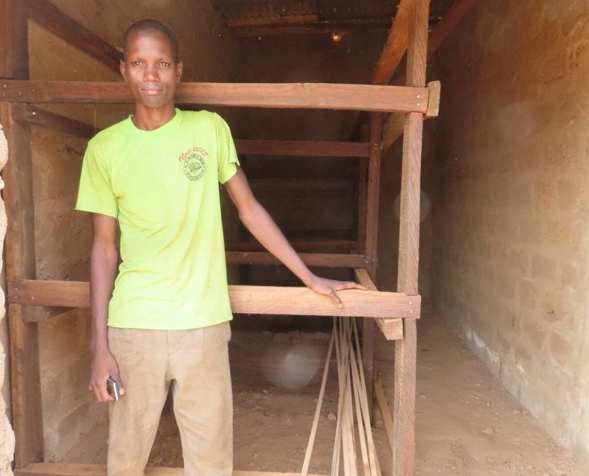 Drie ruimtes wil hij verhuren. Eén aan zijn neef, die een cementhandel wil starten. Een ander is voor zijn vrouw, die met weven wat bijverdient. Voor de derde ruimte is nog geen huurder gevonden. Voor de ruimte direct naast zijn werkplaats heeft Isai andere plannen, vertelt hij: ‘vanaf de grens met Nigeria tot Parakou zijn er geen metaalhandelaren. Ik wil een winkel openen met metaal, waar de lassers uit de omgeving metaal kunnen kopen voor hun producten.’ Het gebouw staat er, er is een stelling om het metaal op te bergen, maar het ontbreekt de ondernemer aan de financiële middelen om een eerste voorraad metaal in te kopen. ‘Ik hoopte dat ik iets zou kunnen sparen om te investeren, maar met de huidige economische omstandigheden heb ik al moeite om de rekeningen te betalen.’