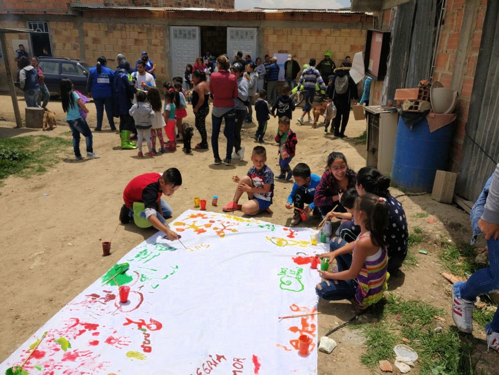 Rond 15.00 uur gingen we richting het park om wat tijd op te vullen. We moesten namelijk om 18.00 uur op een plek in Bogotá zijn om met een team van Conviventia (de partnerorganisatie van Woord en Daad, red.) te gaan evangeliseren. We begonnen de evangelisatie door met elkaar in een grote kring op straat te zingen en te bidden, waarna we met grote thermoskannen drinken en zakken met broodjes de straten in gingen om dat uit te delen en tegelijkertijd het Woord van God te vertellen en hen te zegenen door gebed. Een van ons had armbandjes meegenomen met daarop: ‘God loves you’, dus deze hebben wij ook meteen uitgedeeld. We bereikten hier prostituees, daklozen en kinderen uit een shelter mee. Dit was echt een hele bijzondere ervaring die je de rest van je leven bij je draagt.