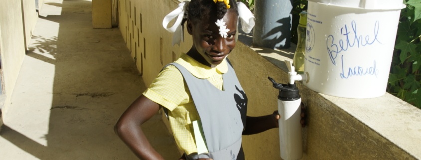 Delorme is leerling op een van de scholen van Parole et Action, partnerorganisatie van Woord en Daad. Op haar school wordt gewerkt aan verbeterde hygiëne, veilig drinkwater en goed sanitair. ‘Het is fijn dat er op school wel water is’, vertelt ze. ‘Daar kan ik drinken zoveel ik wil en steeds mijn handen wassen. Het water is ook ongevaarlijk, want er worden zuiveringstabletten in gedaan tegen de bacteriën. Maar er is niet altijd water geweest op onze school. Voorheen kochten we flessen water die we meenamen naar school, om te drinken. Het scheelt mijn ouders geld dat dat nu niet meer nodig is.’