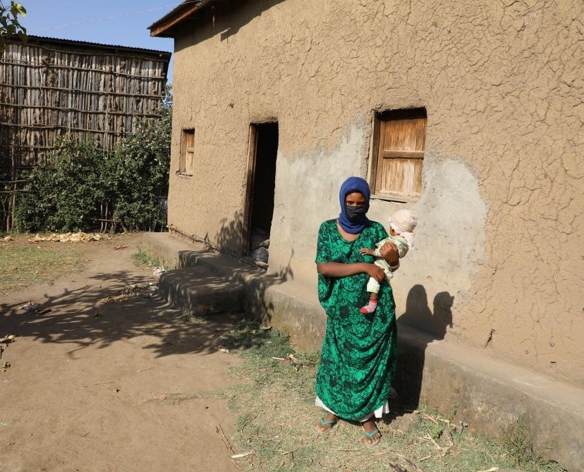 Toen de coronapandemie in maart de wereld over trok, zette de Ethiopische autoriteiten teams in om voorlichting te geven in de dorpen over symptomen en het belang van goede hygiëne. ‘Het was goed om kennis te hebben van de ziekte, maar het was ook angstaanjagend,’ vertelt Fetiya Hamda. De 26-jarige moeder vertelt over de onmogelijke opgave waar de mensen in Senbatu Shalla voor stonden om verspreiding van het virus te voorkomen.