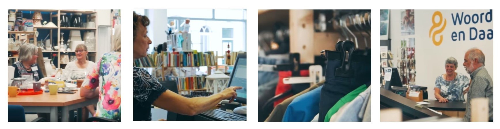 Kenmerken van de kringloopwinkels van Woord en Daad: hergebruik van spullen, een ontmoetingsplek in de regio en inzet voor projecten van Woord en Daad. Word jij ook onderdeel van ons enthousiaste team vrijwilligers?