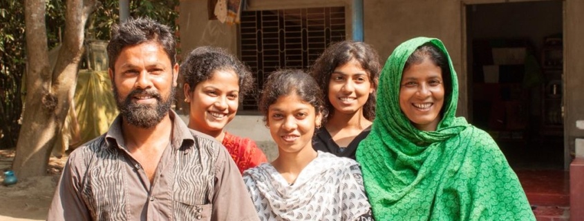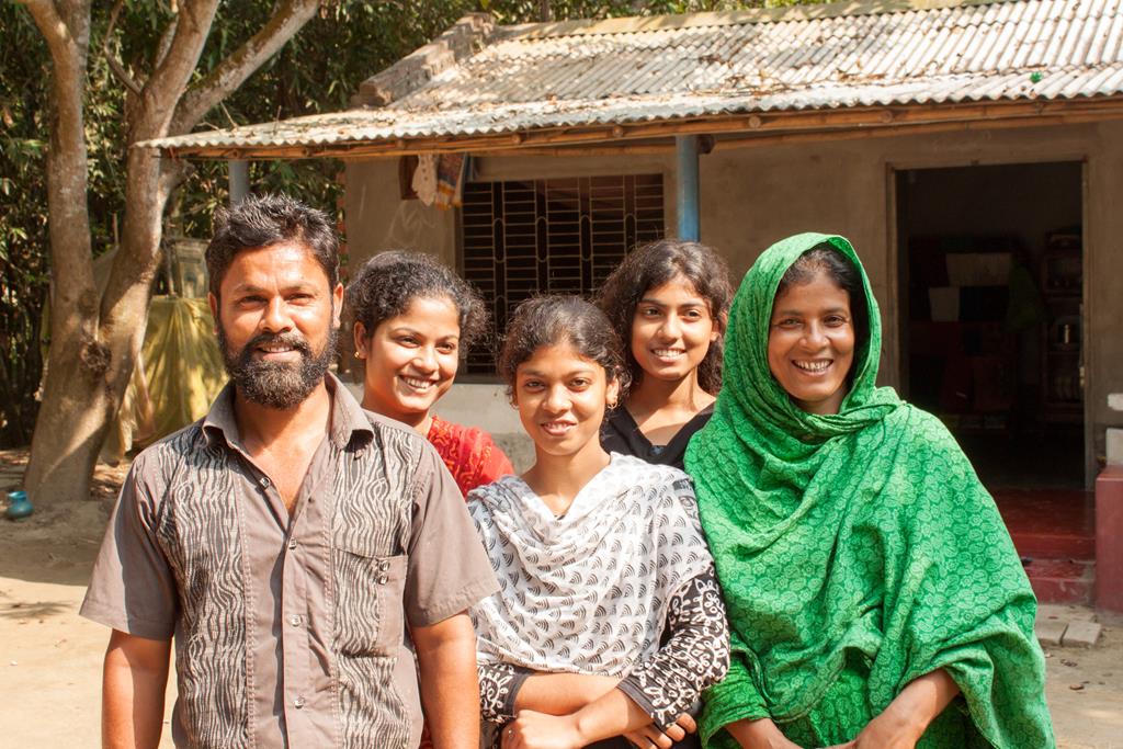 ‘Our family is made up of five people: my wife, Perdosi, my three daughters Shamima, Taharima and Rosanie, and myself of course. My name is Hossain. We moved into this house three months ago. I can say that I am extremely proud of our new home. Previously we had a house built from wattle and daub. Whenever it rained or there was a storm, parts of our house were often washed away. Now we have a solid house and for the first ten years we will not need to carry out any maintenance on it. And what do you think of my daughters? Now they have a place where they can quietly and safely study. The house has a door and can be locked. Their education costs me a lot of money, but I find it really important that they can work on their personal development. I want to invest in that.’