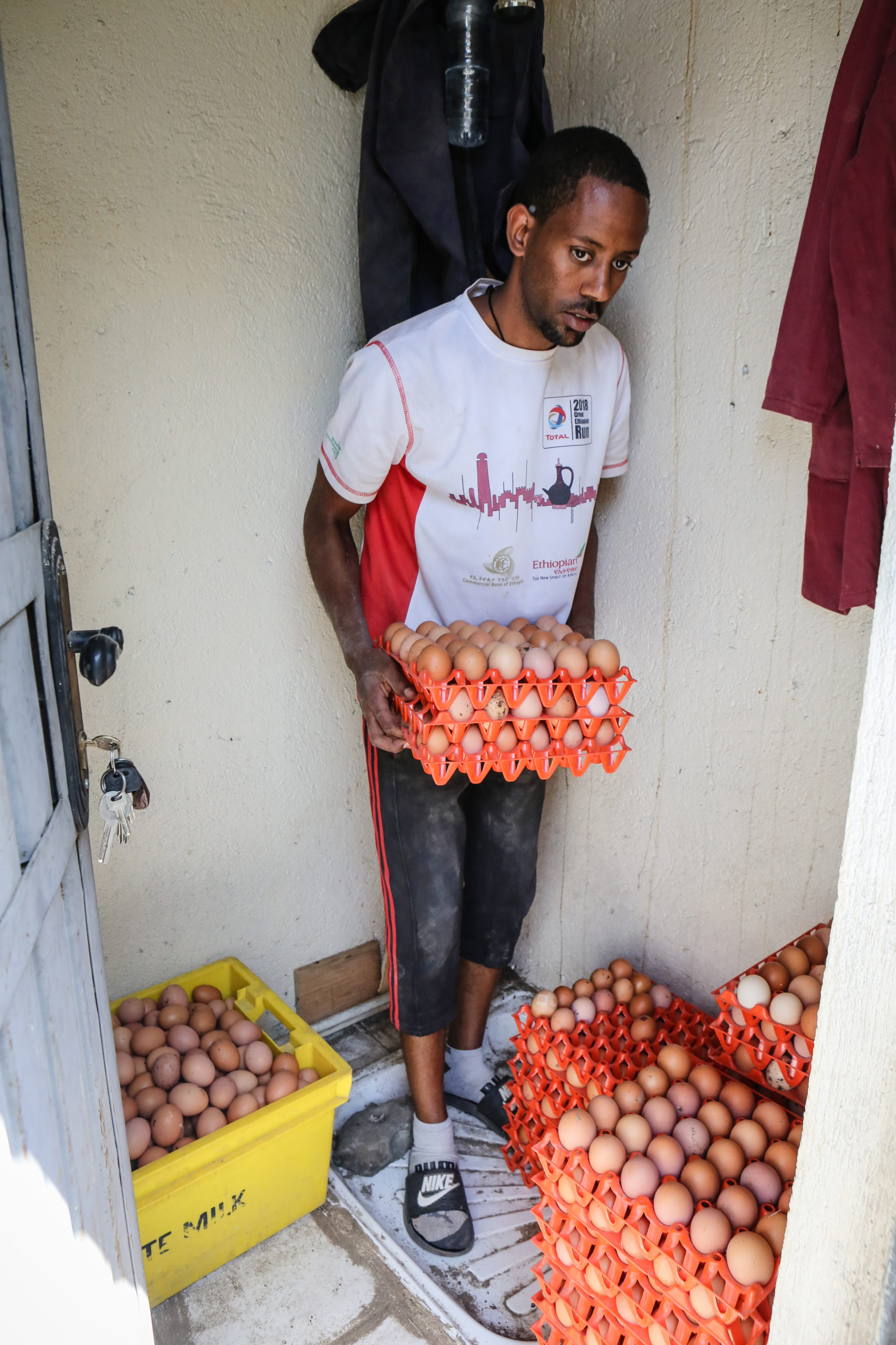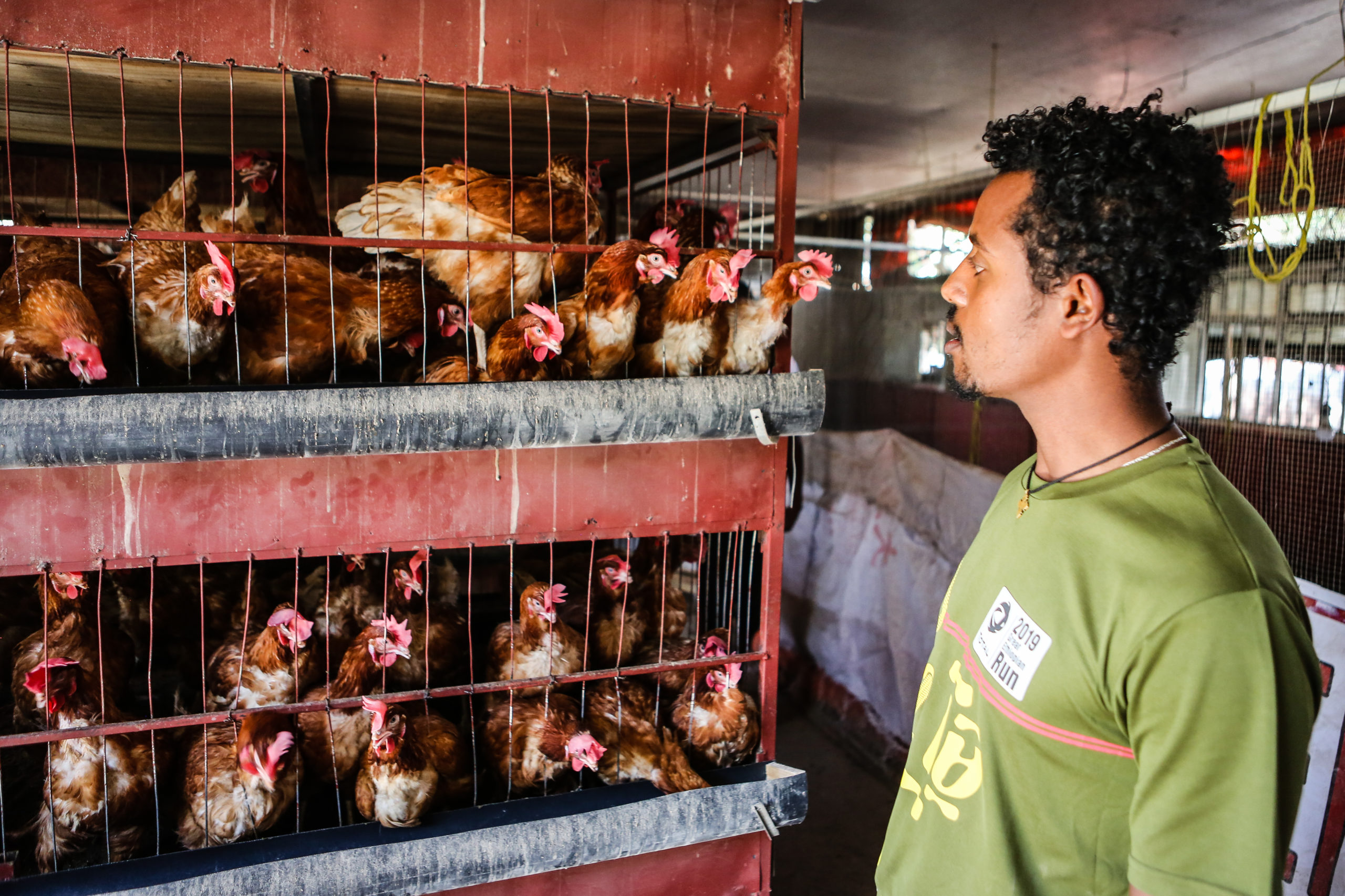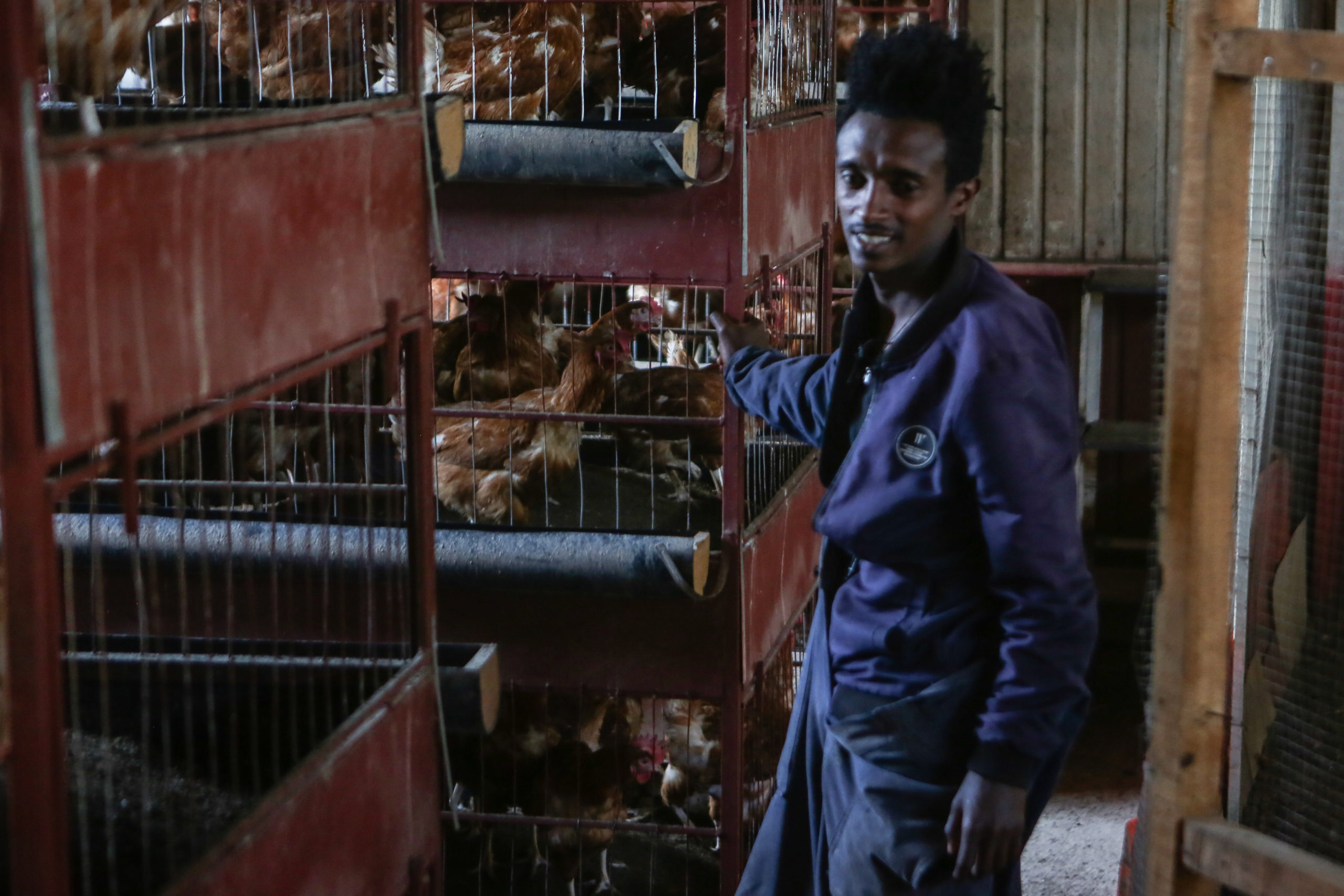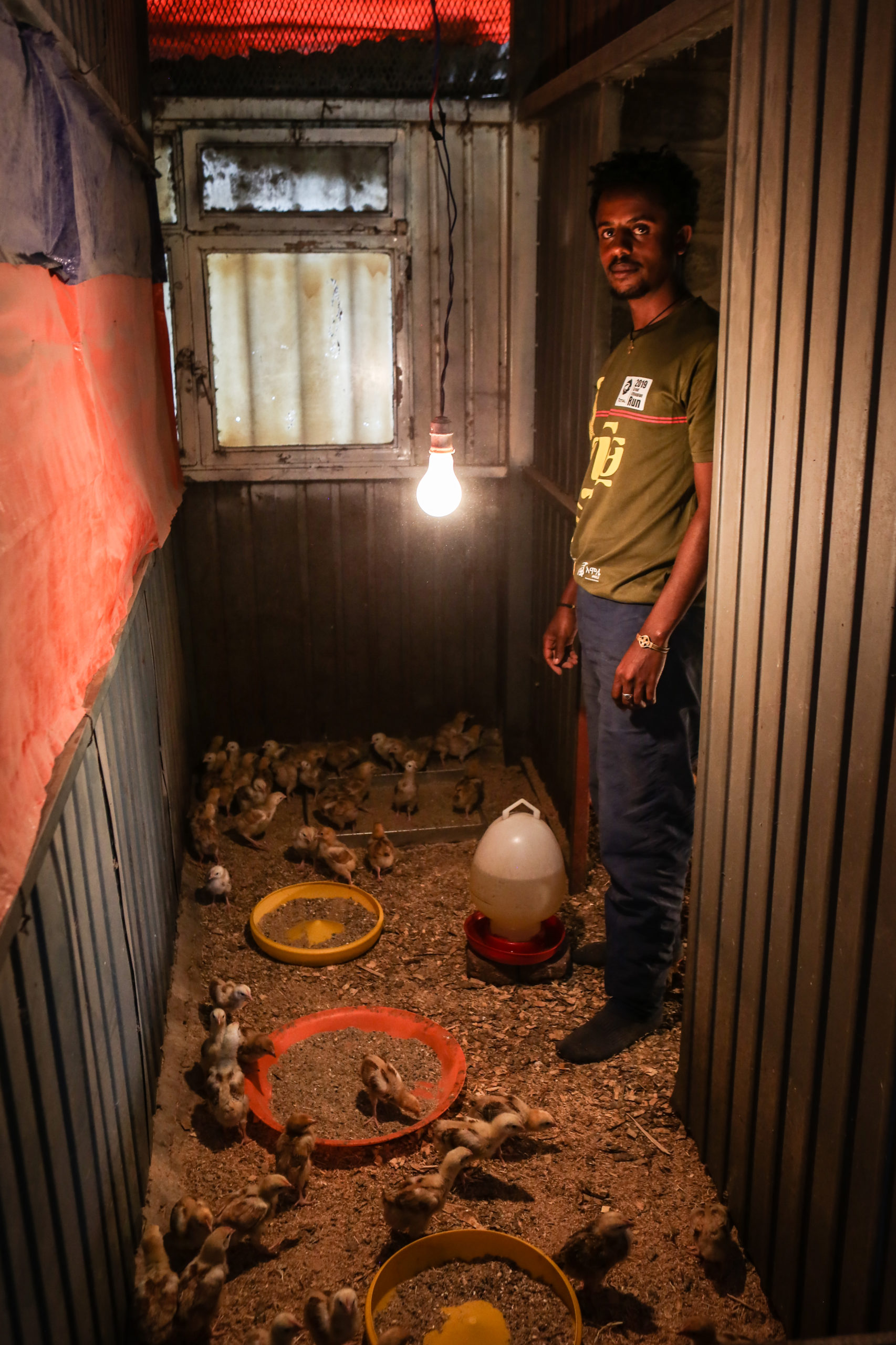 Herinnert u zich Biniyam nog? In de vorige rapportage vertelde hij over zijn plannen om via Soedan en Libië naar Europa te reizen, maar hij werd in Soedan aangehouden en teruggestuurd. Terug in Ethiopië volgde hij een training binnen het EYE-project en besloot hij om samen met vrienden een pluimveebedrijf te starten. We maakten een fotoreportage van zijn bedrijf.