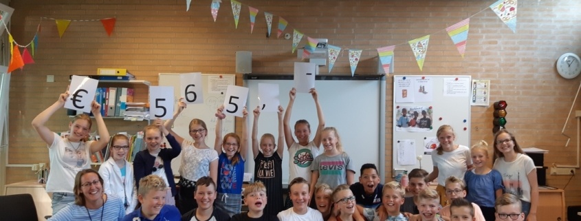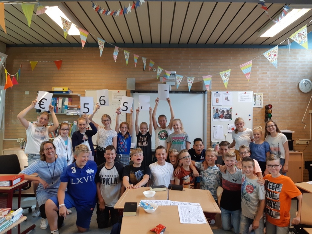 Op vrijdag 5 juli hebben we een actie gehouden voor de mensen in Bangladesh. De weken daarvoor begonnen we met de voorbereidingen zoals het maken van posters en de acties verzinnen. Je kon bij ons op die 5 juli ‘s middags op school komen om allemaal activiteiten te doen. Groep 3 t/m 7 mochten komen en natuurlijk ook ouders, opa’s en oma’s. Je kon onder andere sjoelen, knikkers raden, cupcakes versieren en opeten, een stormbaan in de snelste tijd afleggen, jampotjes kopen en natuurlijk nog veel meer. We hebben die middag in één uur en een kwartier wel €565,- opgehaald!!