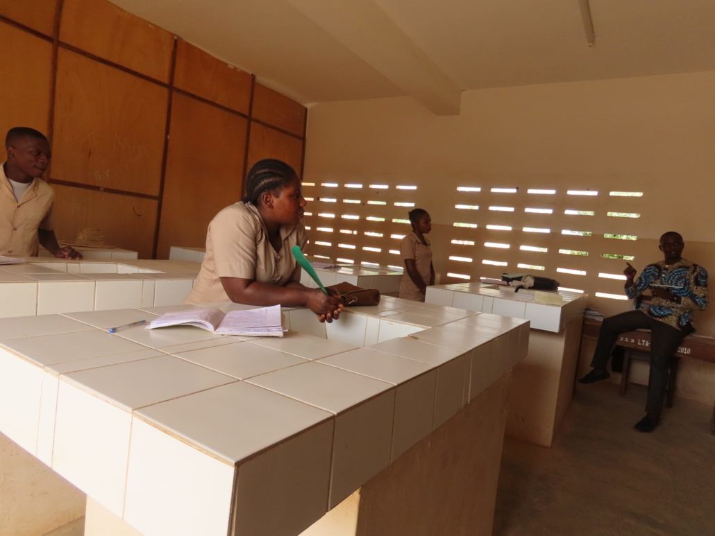 In een halve cirkel achter de hoofdgebouwen staan nog enkele gebouwen met lokalen. Waar het bij de praktijklessen op het heetst van de dag rustig was, klinkt hier meer geroezemoes. In de schaduw van de lokalen krijgen de jongeren theorieles. In een klein lokaal luisteren vijf jongeren aandachtig naar de docent. Het is een groepje vierdejaars van de opleiding verwerking. Zij leren producten verwerken tot bijvoorbeeld sap. De school heeft weinig materiaal voor praktijklessen, daarom bestaat het grootste deel van de lesstof uit theorie.
