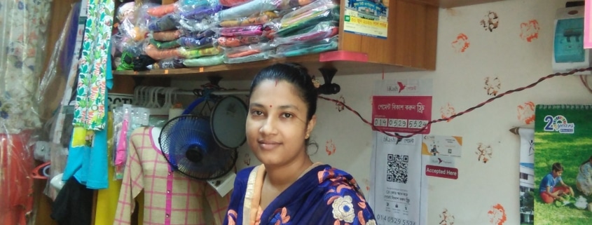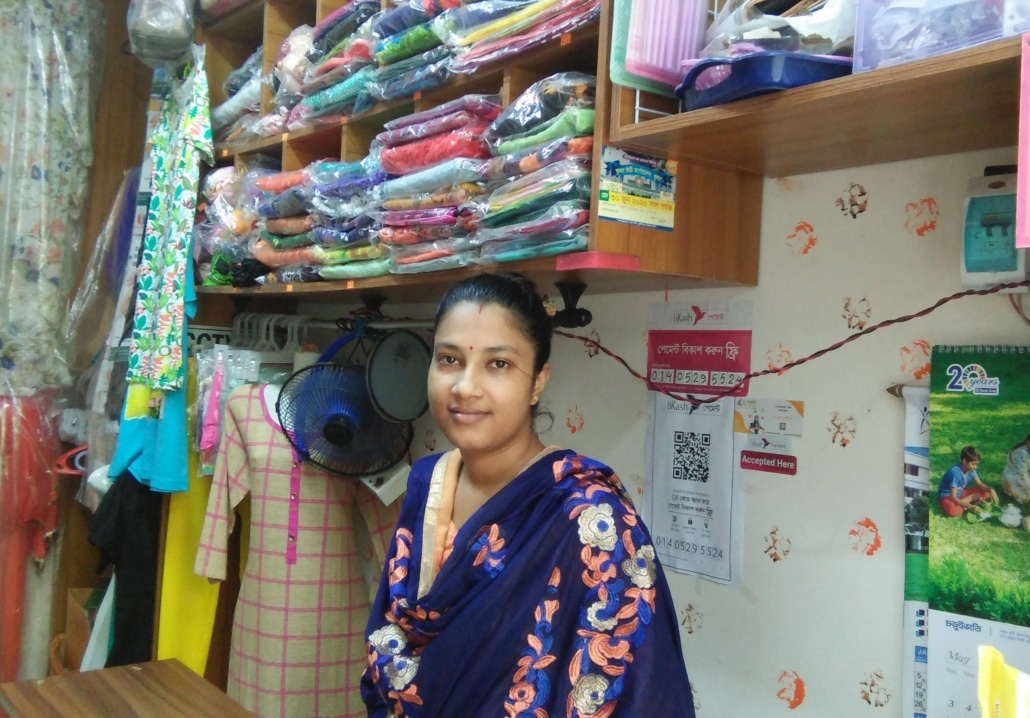 Dat was het begin van een succesvolle onderneming. Moumita richt thuis een ruimte in om te werken, maar ook vrouwen uit andere wijken weten haar te vinden. het aantal orders groeit zo snel, dat het niet meer in huis past. ‘Ik klopte aan bij de Job & Business Service van CSS. Zij adviseerden me om een lening af te sluiten, zodat ik mijn eigen winkelruimte kan huren. Ik kreeg een lening van 150.000 taka (1.500 euro) en kon mijn eigen boutique openen. Nu heb ik mijn eigen kledingboutique in Khulna: Bangla Boutiques and Tailors. Ik heb vaste klanten en een goed inkomen. Ik ben de JBS dankbaar voor hun steun en coaching waardoor mijn leven positief veranderde!’