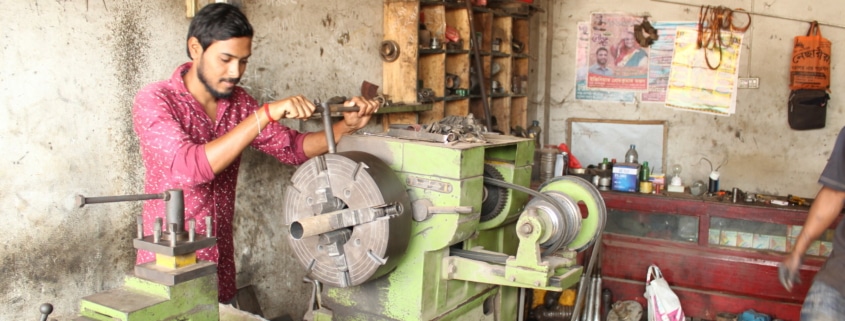 ‘Mijn huidige baan is gerelateerd aan mijn vakgebied (Machinist). Mijn voornaamste werk is het slijpen en maken van kleine machineonderdelen. Toch ben ik niet helemaal tevreden omdat ik de plek waar ik nu werk niet leuk vind. Ook moet ik hard werken voor een lange periode. Ik heb altijd al bij een groot bedrijf in de hoofdstad Dhaka willen werken. Ook zijn er op mijn werkplek zijn geen veiligheidsmaatregelen. Ik heb geen veiligheidsschoenen, geen veiligheidsbrillen en geen brandbeveiligingssysteem. Ook is mijn werkplaats erg klein. Daarnaast ben ik ook niet tevreden met mijn inkomen. Mijn salaris is erg laag. Nu heb ik financiële problemen. Ik kan mijn gezin niet behoorlijk onderhouden. Toen ik in Dhaka werkte, was mijn salaris goed en kon ik aan alle verwachtingen van mijn gezinsleden voldoen.’
