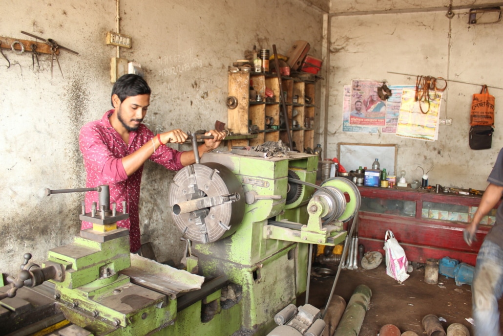 ‘Mijn huidige baan is gerelateerd aan mijn vakgebied (Machinist). Mijn voornaamste werk is het slijpen en maken van kleine machineonderdelen. Toch ben ik niet helemaal tevreden omdat ik de plek waar ik nu werk niet leuk vind. Ook moet ik hard werken voor een lange periode. Ik heb altijd al bij een groot bedrijf in de hoofdstad Dhaka willen werken. Ook zijn er op mijn werkplek zijn geen veiligheidsmaatregelen. Ik heb geen veiligheidsschoenen, geen veiligheidsbrillen en geen brandbeveiligingssysteem. Ook is mijn werkplaats erg klein. Daarnaast ben ik ook niet tevreden met mijn inkomen. Mijn salaris is erg laag. Nu heb ik financiële problemen. Ik kan mijn gezin niet behoorlijk onderhouden. Toen ik in Dhaka werkte, was mijn salaris goed en kon ik aan alle verwachtingen van mijn gezinsleden voldoen.’