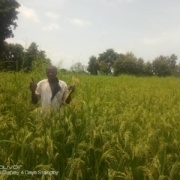 Tot zijn middel staat Issa Amidou Toussa (55 jaar) tussen de rijstplanten. Trots laat hij zijn velden zien.