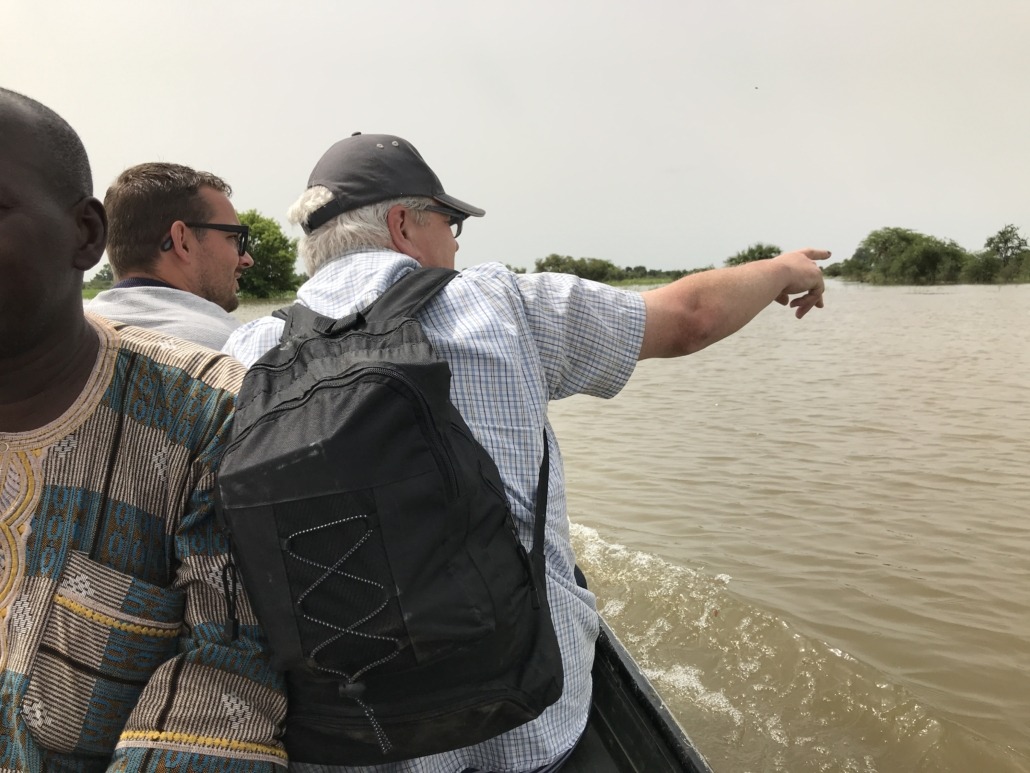 Eerst achterop brommers naar de bootjes om de rivier Chari over te steken. De auto’s van PCAR stonden aan de andere kant van de rivier klaar om ons eerst naar een land met Sesamzaad te brengen. De boer gaf aan erg tevreden te zijn over de adviezen die hij gekregen heeft, maar dat hij niet het geld had om de hoeveelheid biologische pesticiden te kopen die hij eigenlijk nodig had.
