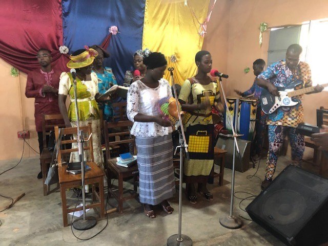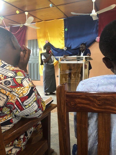 Na een goede eerste nacht in het SIM-guesthouse werden we om 7.45 verwacht voor het ontbijt. Dorcas had gezorgd voor heerlijk zelf gebakken brood met een eitje. Waar het normaal is dat afspraken niet of later uitgevoerd worden, kunnen we dat van onze chauffeurs niet zeggen. Die zorgden er ook nu voor dat we om 9.00 uur in de kerk aanwezig waren. Eenmaal binnen zijn ze al even bezig met een sing-in. Een klein dam met begeleiding, maar wat kan er een geluid uit voort komen, met zoveel passie God loven en prijzen.