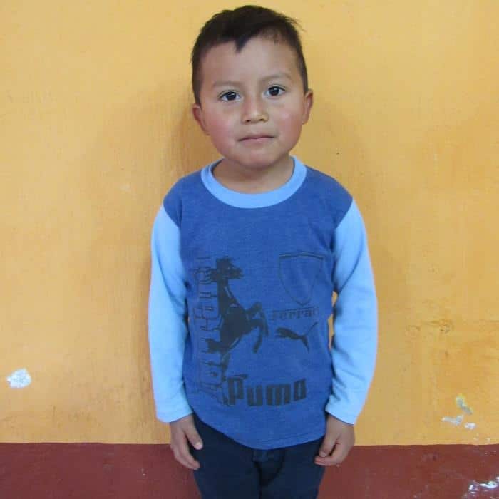 Hallo, mijn naam is Jonathan. Ik ben 6 jaar oud en ik woon met mijn vader en moeder in Guatemala. Ik speel graag met mijn vriendjes. Het allerleukst vind ik voetballen. Mijn moeder zorgt voor het huishouden en het gezin, mijn vader werkt. Door de pandemie valt dit niet altijd mee. Ik ben daarom erg blij dat ik naar school toe kan. Naast alles wat ik leer, krijg ik ook elke dag te eten. Ik ben dankbaar voor de kansen die ik nu heb. Wilt u mij steunen? Bedankt!