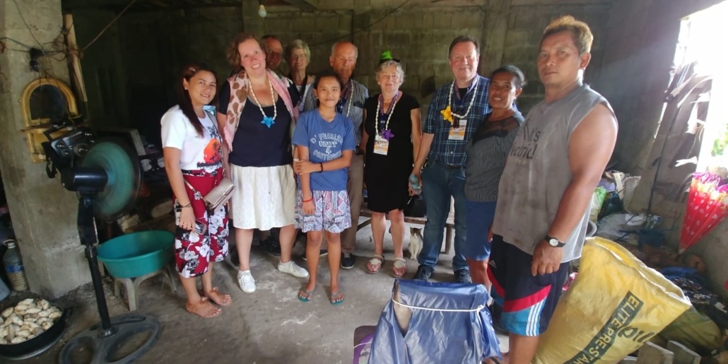 Na een vroege start om 6 uur reden we deze morgen richting het Whitestone Child Care Center. Dit centrum ligt in het noorden van het eiland Samar, en we vertrokken van het zuidelijkste punt van dit eiland, een rit van zes uur. Onderweg heben we genoten van de vele dorpjes die deze vroege morgen al volop in beweging waren. Met name de groepen kinderen op weg naar school, in verschillende uniformen was prachtig om te zien. Bij deze route hebben we veel rijstvelden gezien, en ook hoe deze rijst gedroogd wordt – gewoon op straat. Ook werden we weer geconfronteerd met het feit dat zoveel mensen moeten wonen in zeer armoedige huisjes. Deze bouwels zijn veelal gemaakt van niet meer dan plastic, geweven riet, wat palen en soms met een golfplaten dak.