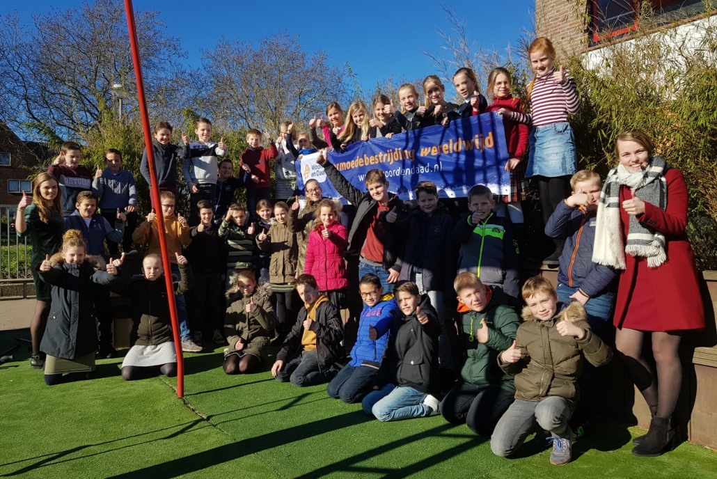 “In de afgelopen twee weken (28-01 tot 08-02) hebben twee groepen 7 van de Graaf Jan van Nassauschool te Gouda actie gevoerd voor Woord en Daad. Zij hebben zich hierbij gericht op het land Burkina Faso, het allerarmste land waar Woord en Daad werkzaam is. De klassen hebben les gehad over verschillende aspecten van het land (landbouw, onderwijs, klimaat en kinderarbeid). Na deze les mochten de groepen zelf een keuze maken voor welk project van Woord en Daad zij geld wilden ophalen. De ene klas heeft gekozen voor het landbouwproject en de andere klas voor het onderwijsproject. Na de les op school kregen alle kinderen 2 euro. Van dit geld moesten zij meer maken. Dat hebben zij op heel veel verschillende manieren gedaan. Zo waren er kinderen die zakjes snoep en broodjes kroket gingen verkopen op school, terwijl andere kinderen klusjes gingen doen. Op heel veel verschillende manieren hebben de kinderen hard hun best gedaan en daarmee is uiteindelijk meer dan 1100 euro opgehaald. €441,10 gaat naar het landbouwproject en 731,50 naar het onderwijsproject”.
