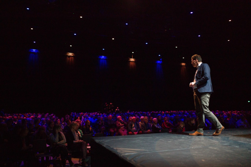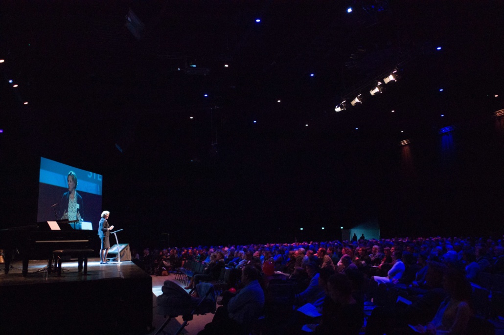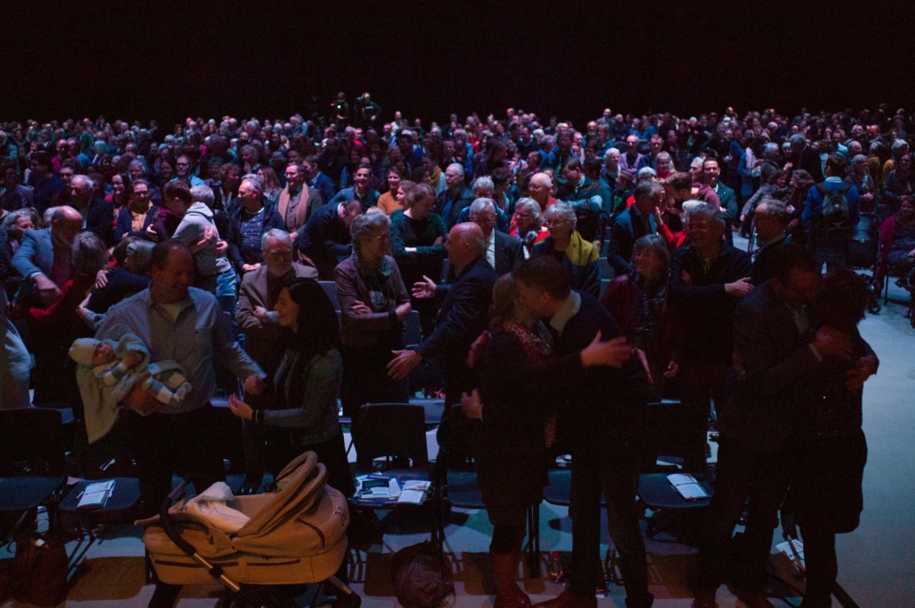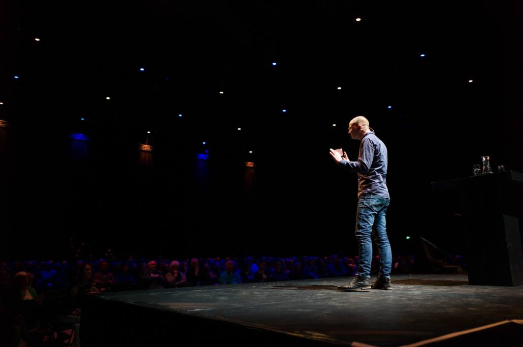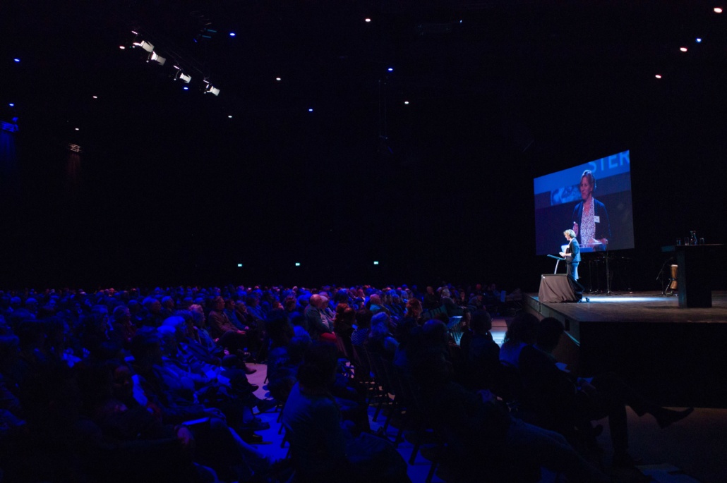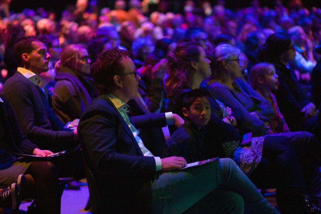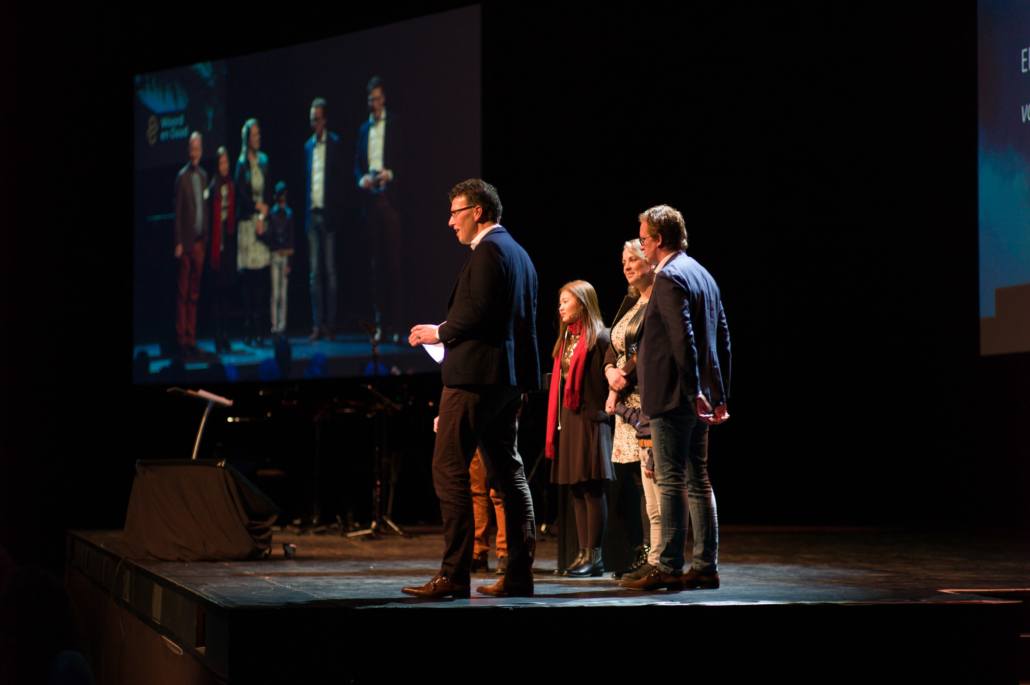 Om 13:45 begon het hoofdprogramma weer, met het stormachtige liedje ‘Sterker dan de Wind’ van kinderkoor De Vuurpijl. Oorlogsjournalist Teije Brandsma deelde welke stormen, letterlijk en figuurlijk, hij is zijn baan gezien heeft. ‘Als ik dan een stad zie die helemaal verwoest is door oorlogsgeweld, gezinnen die uit elkaar zijn gerukt en mensen die geen thuis meer hebben, dan ik realiseer ik me dat het waar is, dat ‘heel de schepping zucht’.’ Na zijn verhaal nodigde Teije Steef de Bruijn, hoofdredacteur van het RD en Tineke Morren, projectleider Noodhulp bij Woord en Daad, op het podium. Wat is de rol van christelijke journalistiek in de noodhulp verslaglegging, vroeg Teije aan Steef de Bruijn. ‘Juist ook als christenen moeten we kritisch blijven op hoe we noodhulpgeld besteden. Want we hebben een Bijbelse opdracht gekregen om er te zijn voor de mensen in nood.’ Tineke Morren reageerde: ‘Die opdracht kunnen we als Woord en Daad niet alleen, en we zijn dagelijks verwonderd door de steun en het gebed van alle mensen hier in de zaal.’