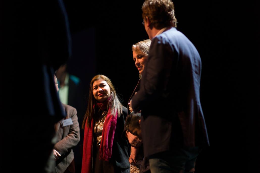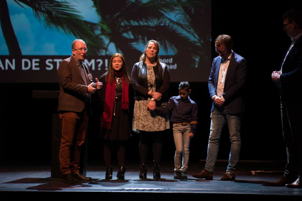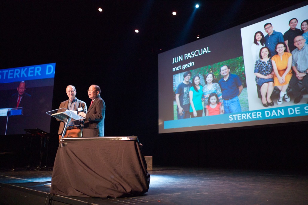 Een ander verhaal vol stormen, werd verteld door Kate Ann Micosa, voormalig sponsorkind en student aan ASHTEC. Kate vertelde dat toen ze jong was, het leven niet makkelijk was. ‘Ik herinner me nog de dagen dat we een maaltijd moesten overslaan, omdat mijn vader die dag niet genoeg verdiend had.’ Haar leven veranderde toen haar ouders werden benaderd door de partner van Woord en Daad, AMG Filipijnen, om Kate en haar broer op te nemen in het sponsorprogramma. De mooiste en belangrijkste verandering was dat Kate in dit programma God leerde kennen en tot geloof kwam. ‘Beseffen jullie je dat, alle sponsors die hier zitten? God wil jullie gebruiken om ons kennis te laten maken met de gave van het eeuwige leven! Dat is het beste wat jullie ooit voor ons kunnen doen’. Na dit prachtige verhaal kwamen Kate’s sponsors op het podium. Erik en Jenneke Donkersteeg deelden hoe bijzonder ze het vinden om Kate nu in het echt te ontmoeten. ‘Wat ooit begon als een fotootje op een wegwijsbeurs, staat nu in levende lijve naast ons.’ Kate kreeg tranen in haar ogen toen ze deelde dat het een droom is die uitkomt, om naast haar sponsors te staan. ‘En ze eindelijk persoonlijk te bedanken voor wat ze voor mij hebben betekent.’