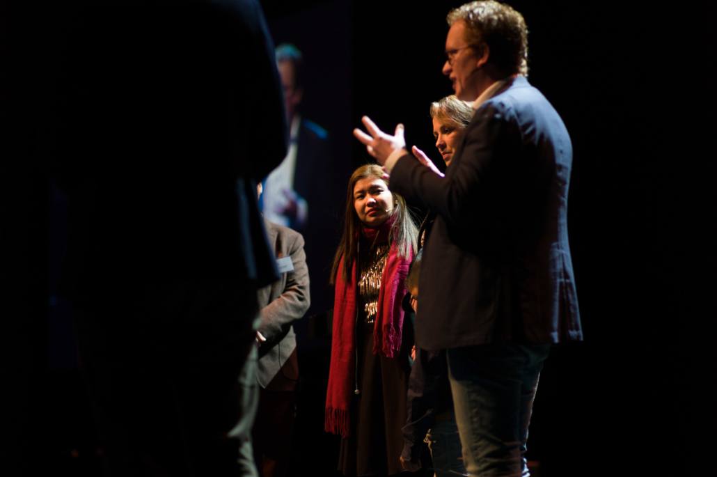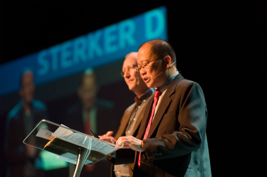 Na de opening van de dag was het woord aan dhr. Jun Pascual, de directeur van één van de meest succesvolle vakscholen van de Filipijnen. Het was niet de eerste keer dat hij in Nederland was – hij had al kennisgemaakt met ‘ons mooie land’, zoals hij het noemde. ‘Ik hou van jullie kaas, en ook zeker van de stroopwafels. Maar de drop sla ik liever over!’ Jun vertelde hoe zijn school in de Filipijnen een toekomst wil geven aan jongeren uit de sloppenwijken. Jongeren met een stormachtig leven, waar de uitdagingen elkaar opstapelen. Zoals in het verhaal van Marlon Diaz, waar Jun mee afsluit. ‘Marlon Diaz werd geboren in een arm milieu. Al vroeg in zijn leven wist hij: ik wil een ander soort leven. Ik wil een goede baan en een gezin waar ik wél voor kan zorgen.’ Door zijn studie in ASHTEC krijgt Marlon zijn droombaan. ‘Marlon ondersteunt zijn eigen familie nu financieel en betaalt voor de studie van zusje. Een verhaal van stormen, succes, familie en de onafhankelijkheid waar hij van droomde.’