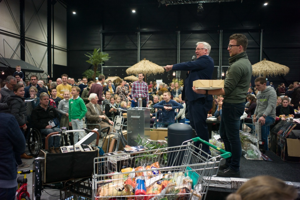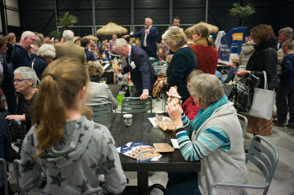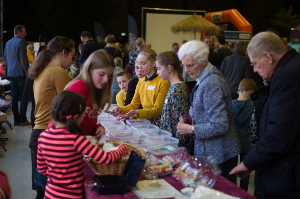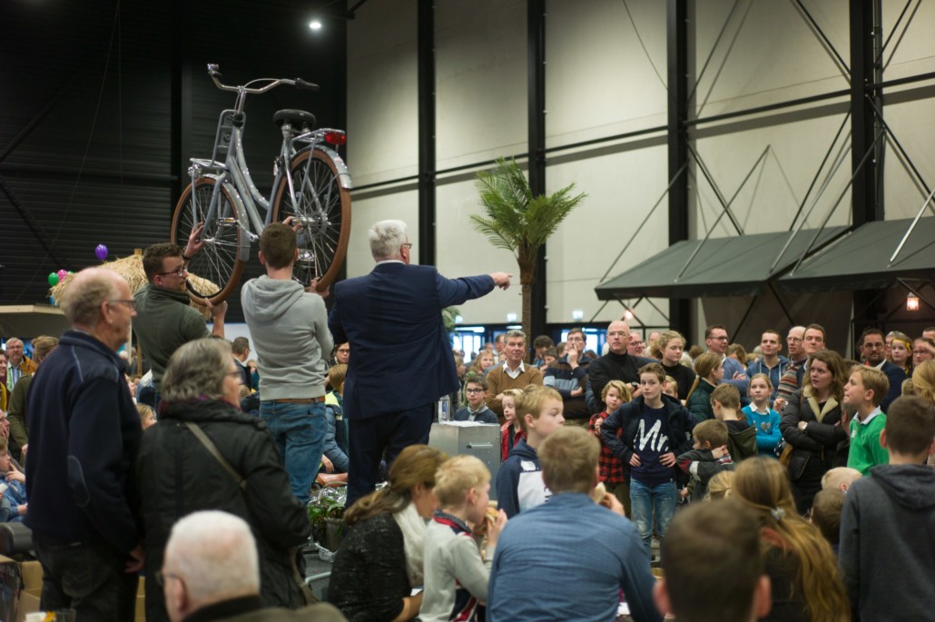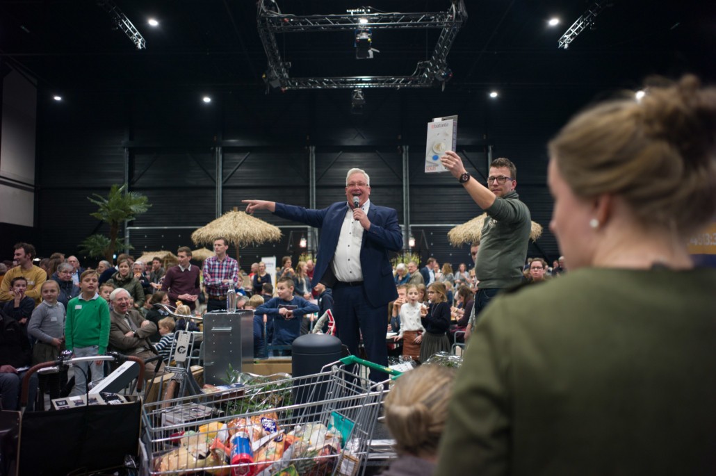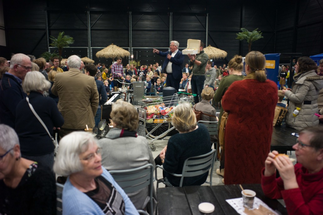 Tijdens de pauze was er op de grote wereldmarkt van alles te beleven. De medewerkers van de sponsorstand hadden het druk – dit weekend hebben maarliefst 29 kinderen een sponsor gekregen! In de kramen van de winkels en comités van Woord en Daad was van alles te krijgen. In de stand van het evenement Sport for Others kon je je eigen smoothie bij elkaar fietsen. Water tappen kon in de stand van het programma ‘duurzaam water’, en velen kraakten voor het eerst van hun leven een cashewnoot! De veiling zat vol verrassingen: naast ballonvaarten en krentenbroden waren er opeens niet 1, maar 2 fietsen te veilen!