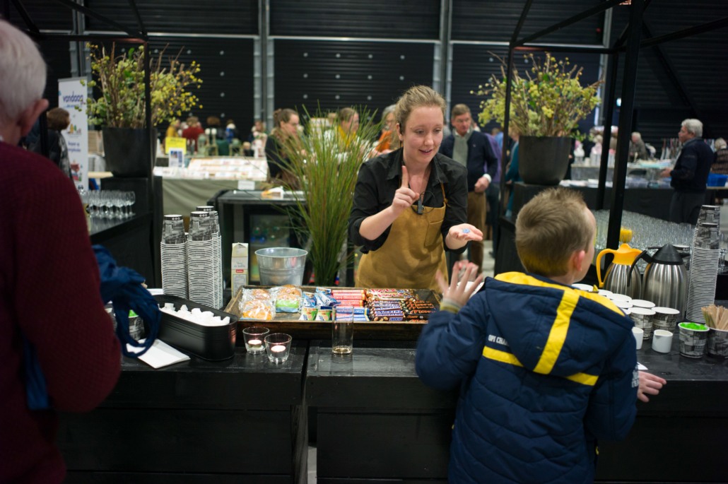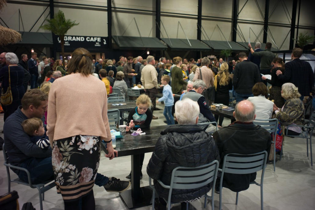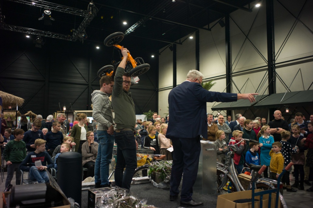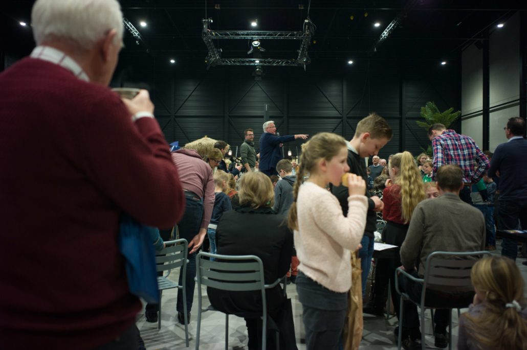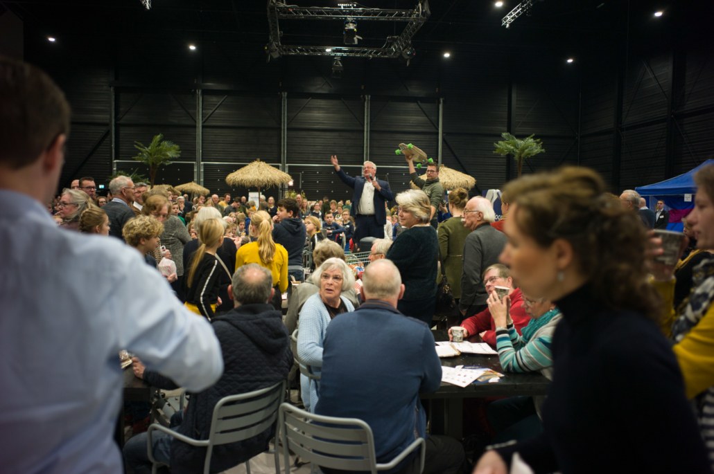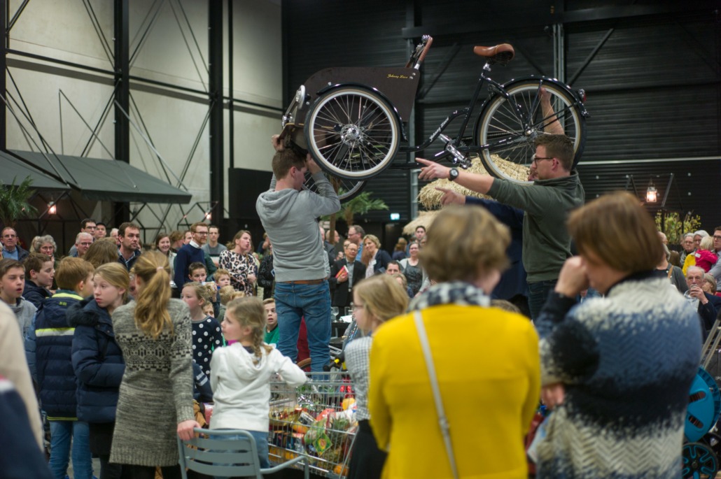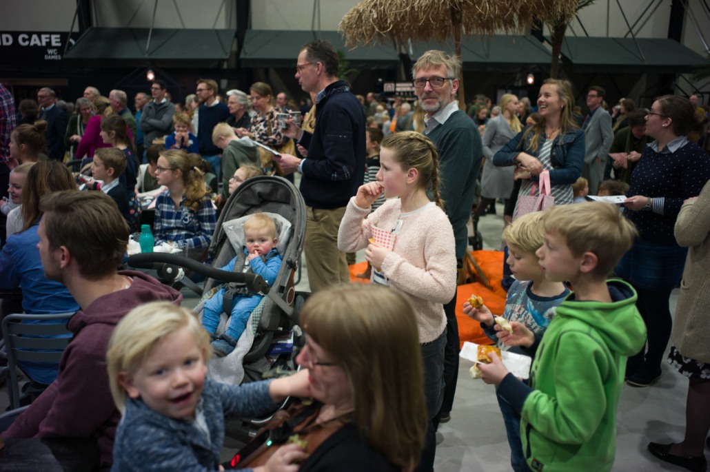 Tijdens de pauze was er op de grote wereldmarkt van alles te beleven. De medewerkers van de sponsorstand hadden het druk – dit weekend hebben maarliefst 29 kinderen een sponsor gekregen! In de kramen van de winkels en comités van Woord en Daad was van alles te krijgen. In de stand van het evenement Sport for Others kon je je eigen smoothie bij elkaar fietsen. Water tappen kon in de stand van het programma ‘duurzaam water’, en velen kraakten voor het eerst van hun leven een cashewnoot! De veiling zat vol verrassingen: naast ballonvaarten en krentenbroden waren er opeens niet 1, maar 2 fietsen te veilen!
