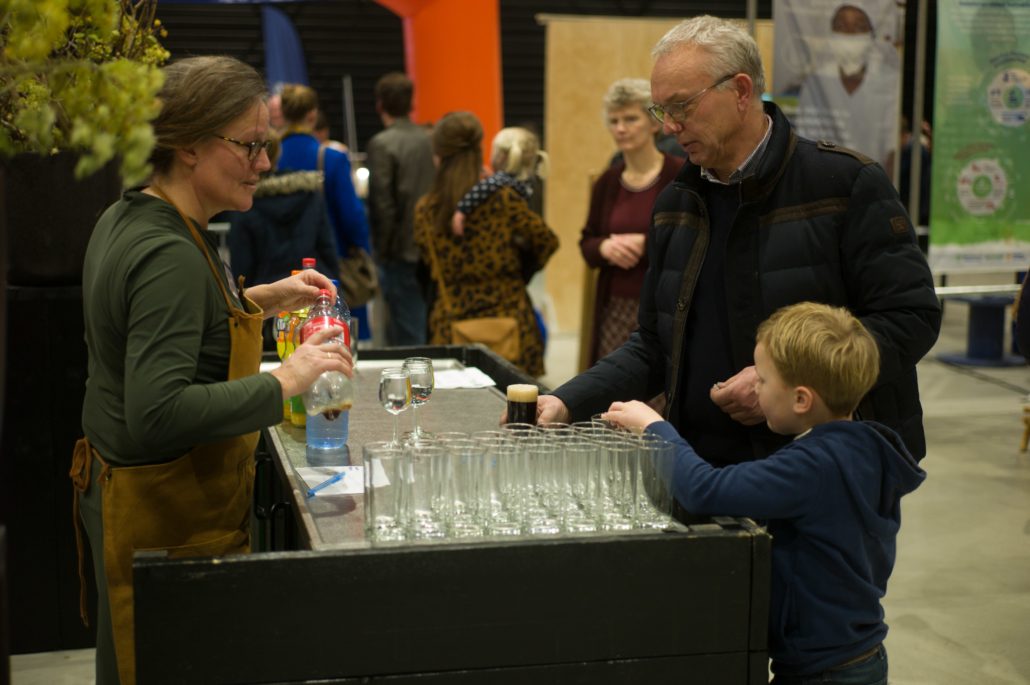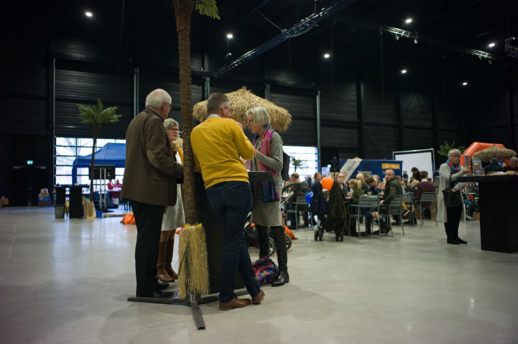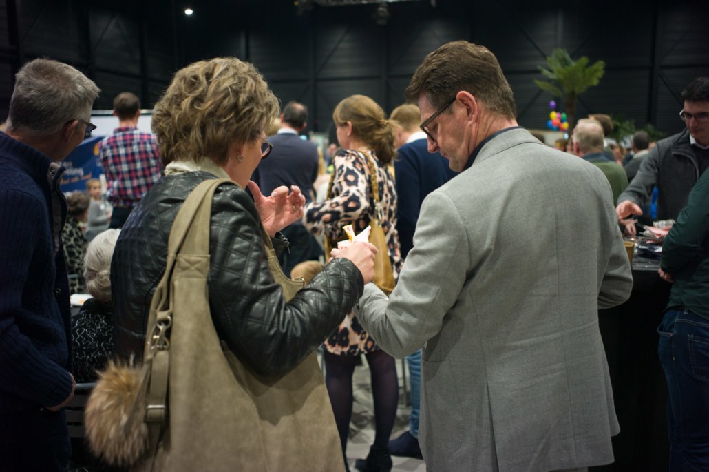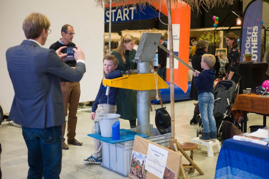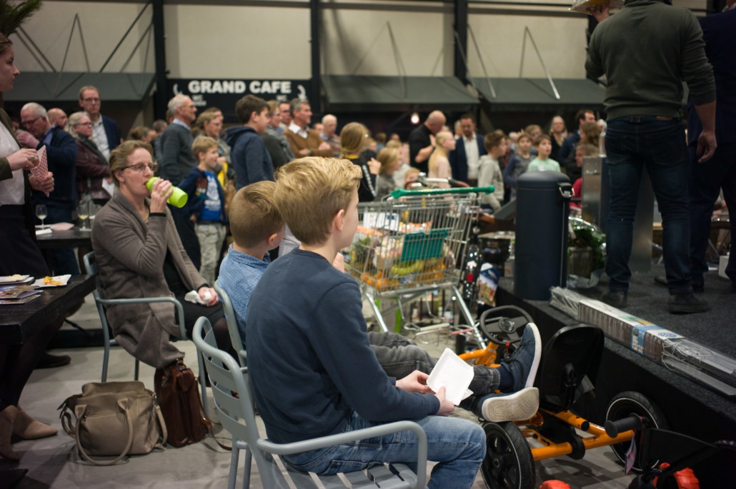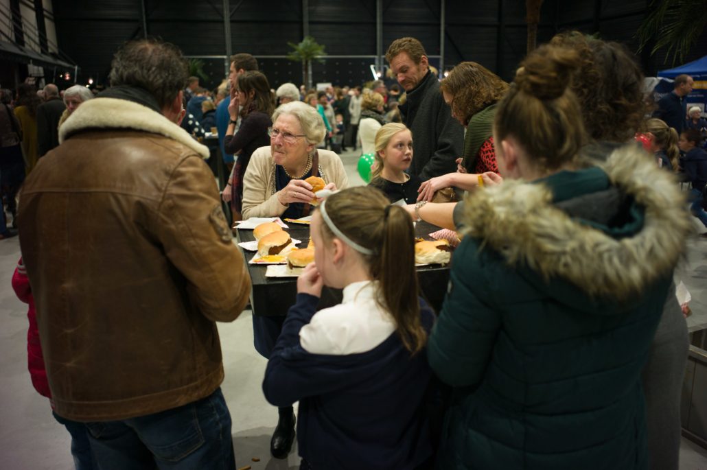 Tijdens de pauze was er op de grote wereldmarkt van alles te beleven. De medewerkers van de sponsorstand hadden het druk – dit weekend hebben maarliefst 29 kinderen een sponsor gekregen! In de kramen van de winkels en comités van Woord en Daad was van alles te krijgen. In de stand van het evenement Sport for Others kon je je eigen smoothie bij elkaar fietsen. Water tappen kon in de stand van het programma ‘duurzaam water’, en velen kraakten voor het eerst van hun leven een cashewnoot! De veiling zat vol verrassingen: naast ballonvaarten en krentenbroden waren er opeens niet 1, maar 2 fietsen te veilen!