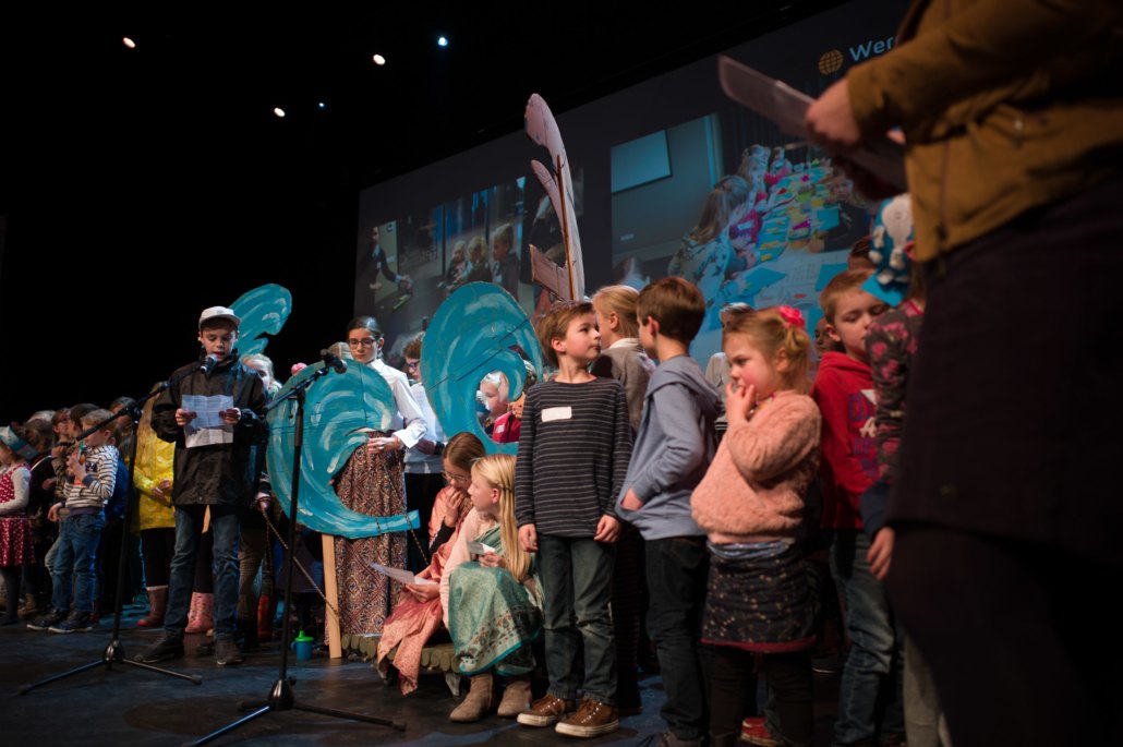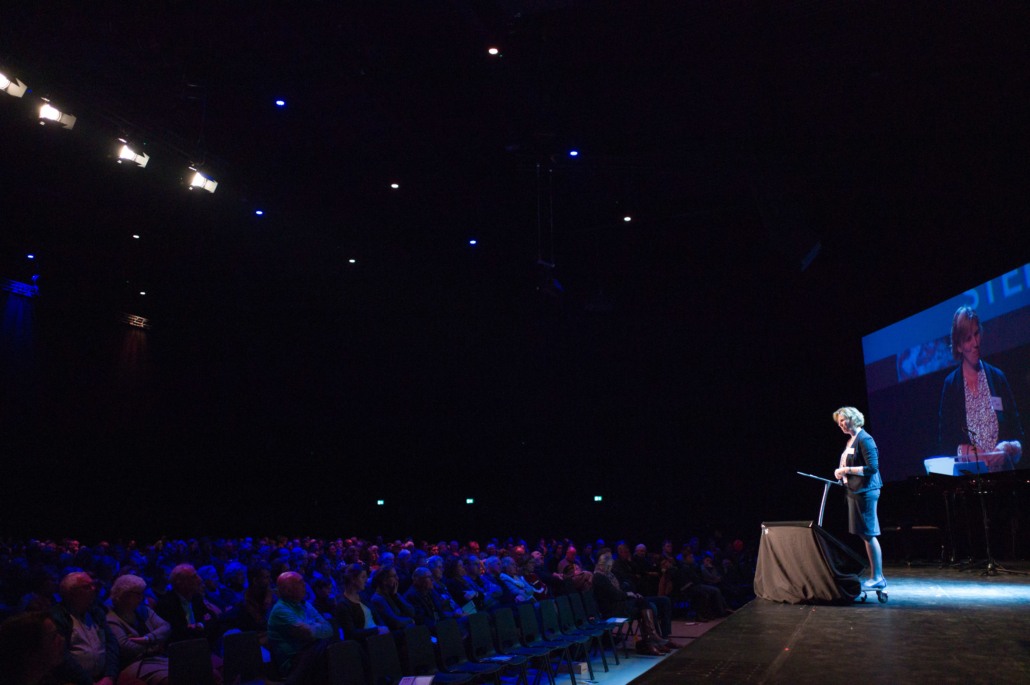 Voor de kinderact het programma op een stormachtige manier afsloot, deelde Rina een persoonlijke en wonderlijke ontmoeting met ons. Ze vertelde hoeveel mensen ze tegenkomt in haar werk die met stormen te maken hebben. Maar juist ook mensen, die te midden van de stormen de rust vinden in het Woord van God. Zoals die vrouw uit Colombia, die door de onrust in haar land in twee jaar tijd van de regering 7 keer moest verhuizen. 7 keer weggejaagd, 7 keer nieuwe beloftes, 7 keer teleurgesteld. ‘Maar: Ze hield de bijbel voor haar gezicht. Haar ogen straalden toen ze zei: ‘God is trouw. Wat Hij belooft doet Hij. Daarom lees ik in de Bijbel en troost ik me met Zijn belofte.’ Dát is wat wij uitdragen: Woord én Daad.’