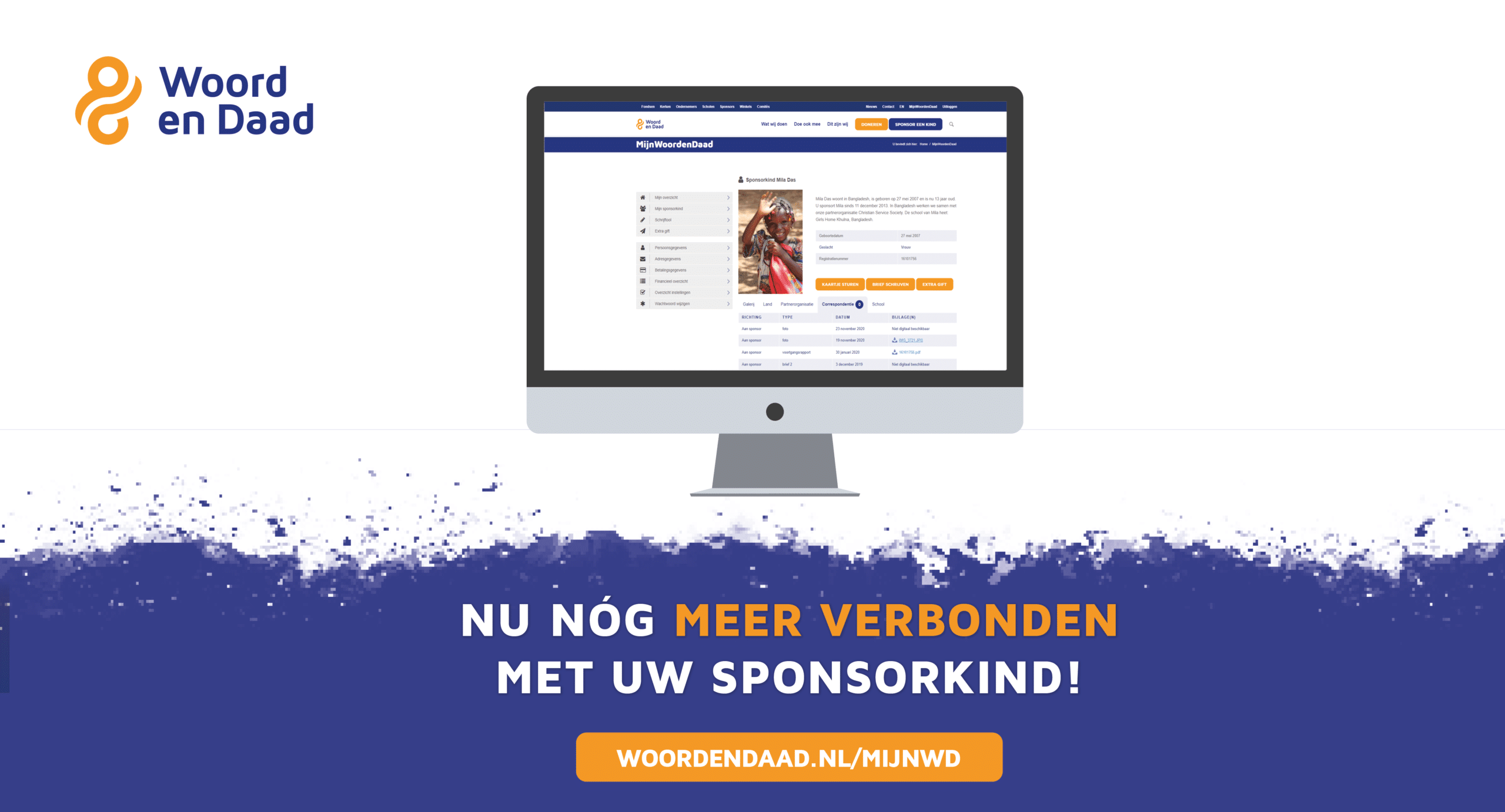 Kortom, via uw eigen MijnWoordenDaad-account heeft u alle informatie over uw sponsoring bij de hand. Het is de snelste, eenvoudigste én leukste manier om op de hoogte te blijven van uw sponsorkind!
