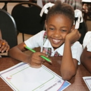 Claudine herinnert zich haar eerste ontmoeting met Jasmithe, inmiddels drie jaar geleden, nog goed. ‘Ik was vastberaden om mijn verleden en alle slechte dingen die gebeurden om te draaien naar iets positiefs. Ik wilde graag goed mijn best doen op school.’ Door de hulp van Restavek Freedom lukte dat. ‘Naar school kunnen gaan, geeft me het gevoel dat ik een mens ben zoals iedereen. Ik kan nu dromen over mijn toekomst. Vroeger had ik geen uniform en rugzak om te dragen, maar nu wel. Dat geeft me een trots gevoel.’