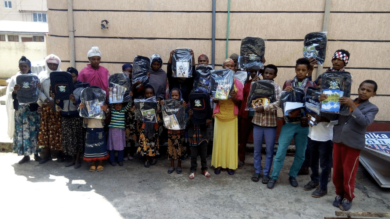 Ook de kinderen van de gezinnen die deelnamen zijn betrokken in het project. Om ze enthousiast te maken voor school, ontvingen ze schriften, papier en andere schoolmaterialen.