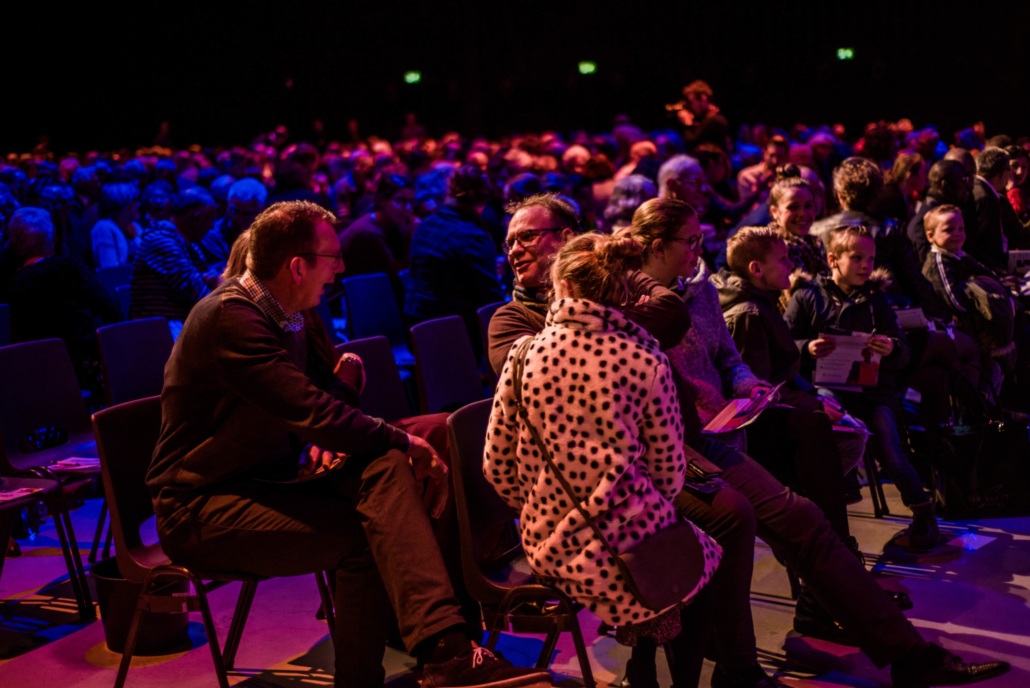 Buiten is het druilerig. Grote regendruppels glijden langs de ramen naar beneden. De in felgele jassen gestoken parkeerwachters trotseren de kou en de regen en wijzen de talloze auto’s een parkeerplek. Binnen is het druk, gezellig en vooral warm. Letterlijk én figuurlijk. ‘Leuk, mooi en indrukwekkend,’ ‘wat een fijne dag’, ‘hoopvol en bemoedigend,’: het zijn zomaar wat reacties van bezoekers later op de dag.
