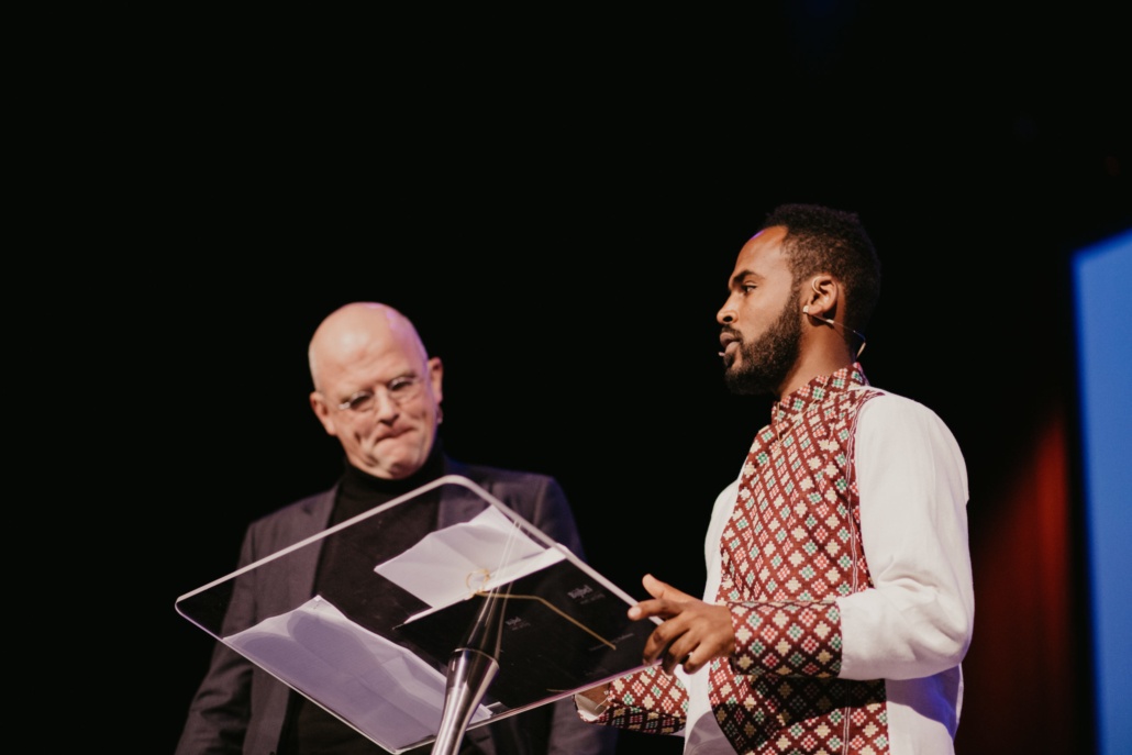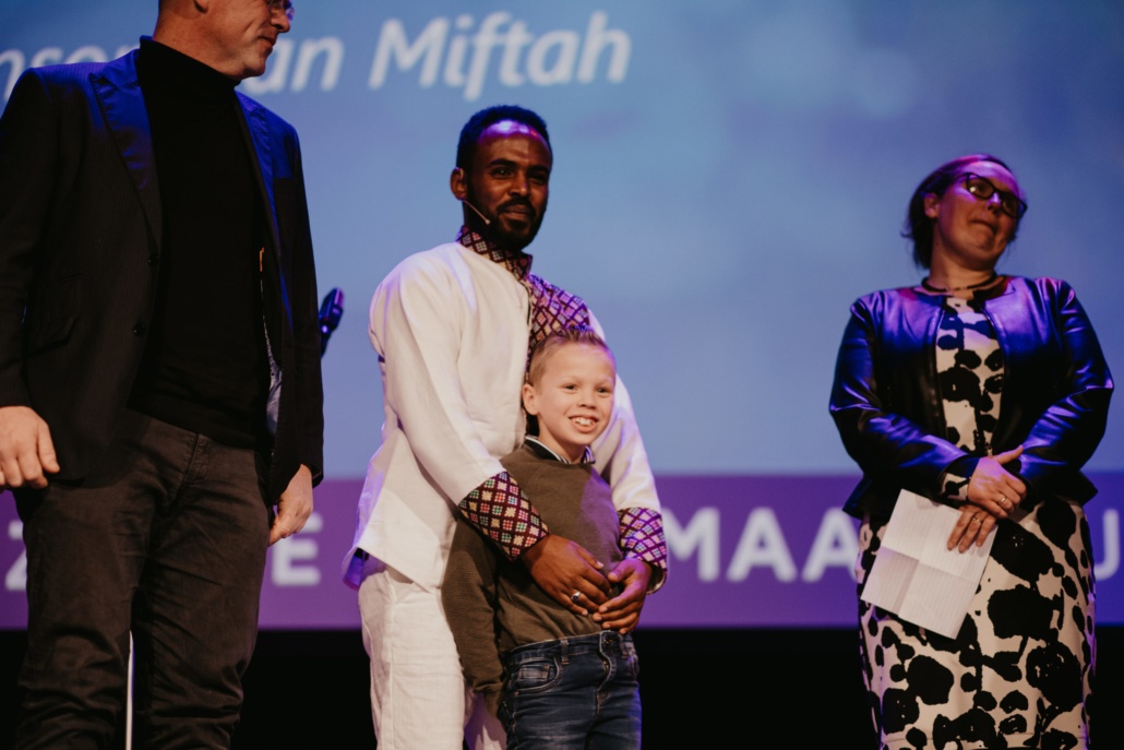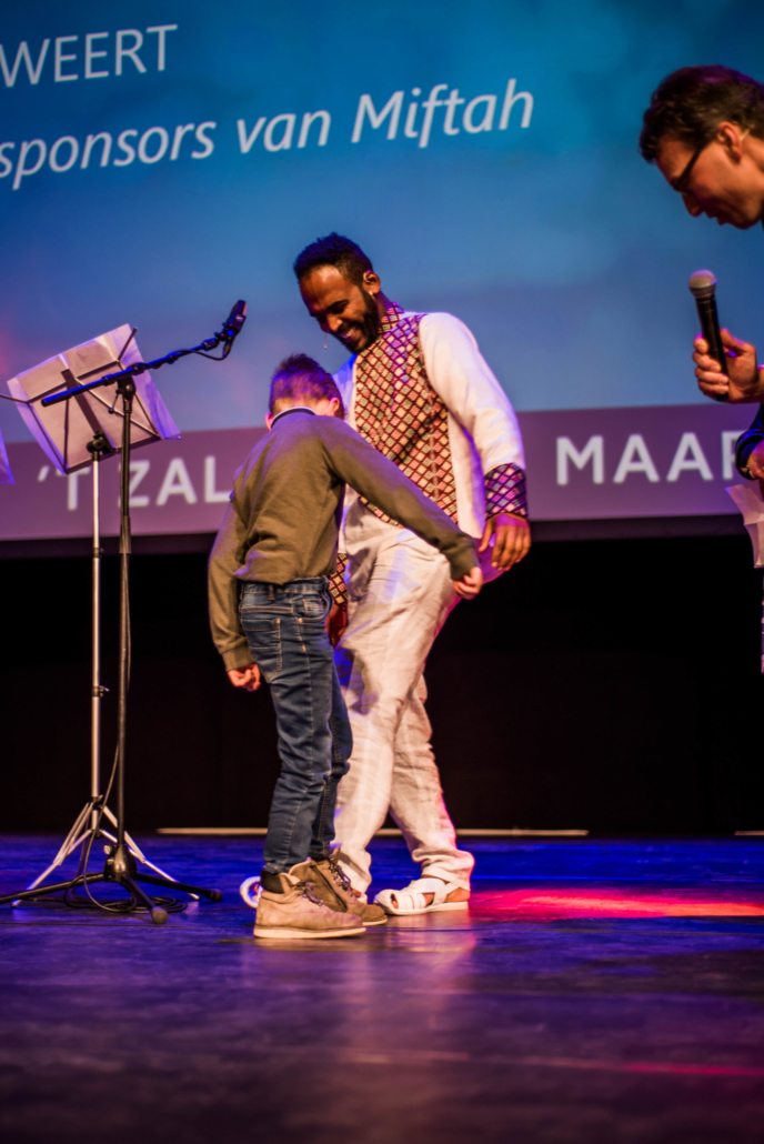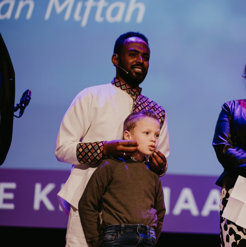 En bemoedigend ís het verhaal van Miftah Seid. Open en eerlijk deelt hij de mooie en moeilijke momenten uit zijn leven. Hoe hij op 4-jarige leeftijd wees werd en opgevoed werd door zijn oma. Hoe oma soms dagen niet at, zodat haar kleinkinderen te eten hadden. ‘Oma zei dan: als ik jullie zie eten, word ik zelf ook gevoed,’ vertelt Miftah. Een golf van ontroering gaat door de zaal.
