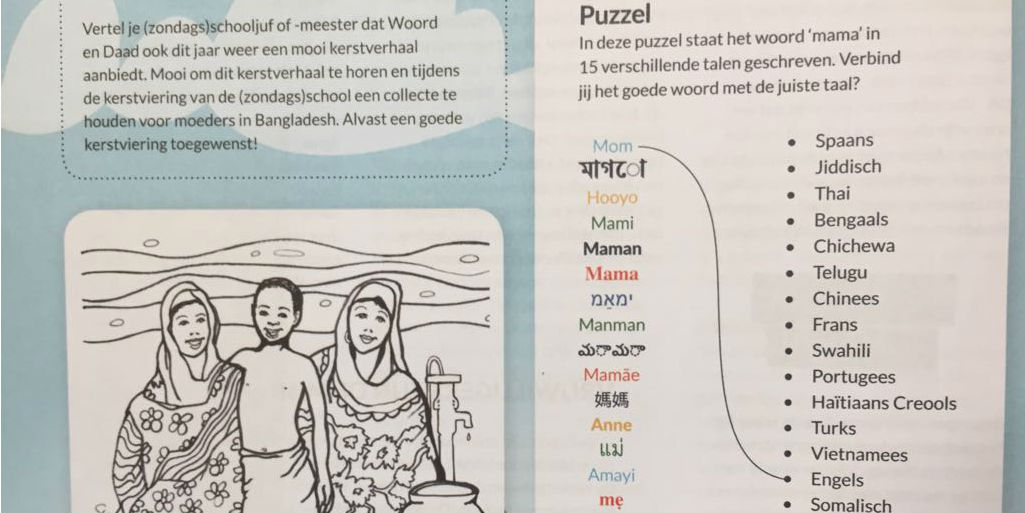 In “Werelddelen” van december 2017 stond een taalpuzzel. Het woord mama stond in 15 verschillende talen beschreven. Wat fijn dat er zo veel reacties binnen zijn gekomen op deze puzzel! Inmiddels zijn de winnaars bekend gemaakt: