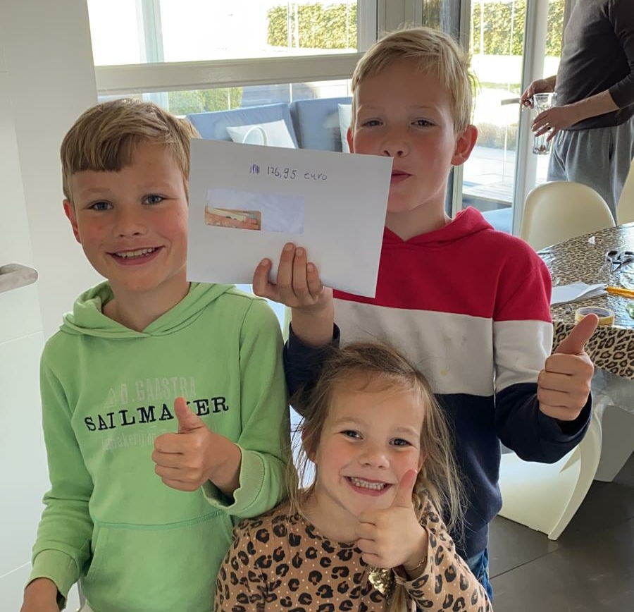 De familie van Sorge heeft hart voor onderwijs in Sierra Leone. Xander, Ralph, Charlotte en vriend Joas bedachten een lekkere stroopwafelactie om geld op te halen voor schoolkinderen in Sierra Leone. Mensen in de buurt konden stroopwafels en zakjes kruimels kopen. Dit leverde het mooie bedrag van €126,95 op. Jullie zijn toppers, bedankt!