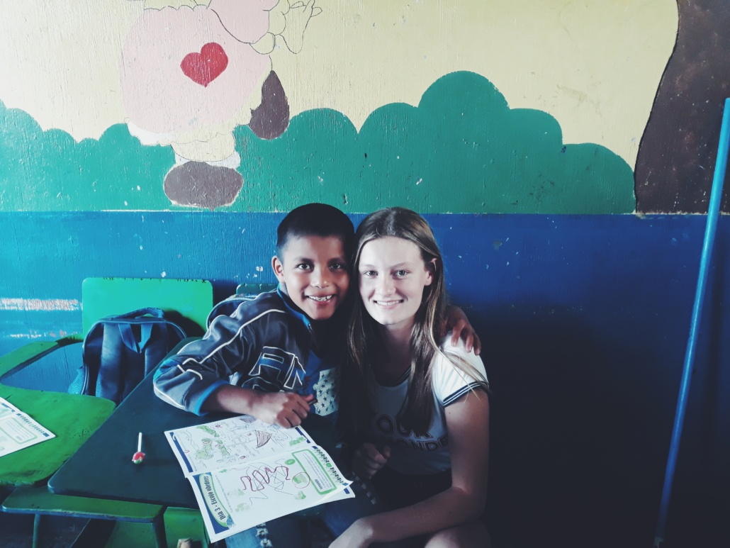 Vandaag hebben we weer veel gedaan. Als eerste bezochten we las Vistas een school aan de rand van Guatemala. De school heeft zijn naam gekregen vanwege het prachtige uitzicht vanaf de berg waarop de school ligt. We werden vriendelijk ontvangen door de directrice en werden we naar een lokaal geleidt waar allemaal kleine kinderen zaten. Zij kunnen geen Nederlands en wij geen Spaans. Het communiceren gaat daardoor best een beetje lastig maar met veel gebaren en aandacht geven kom je een heel eind.