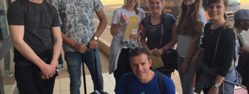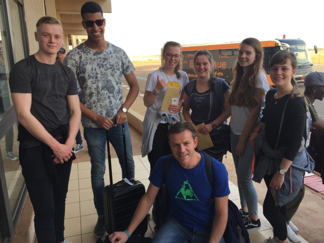 De vlucht zelf ging goed, de meningen verschillen nog of het een ‘ruige’ of een gemiddelde vlucht is geweest. Het doortrekken van de wc was alleen nog wel een dingetje (‘zo eng!’). Op de vluchthaven van de hoofdstad Burkina Faso, Ouagadougou was Pieter toch wel bang dat zijn koffer weer niet zou zijn aangekomen, maar onze lieve groep had gelukkig alleen maar zijn koffer verstopt.